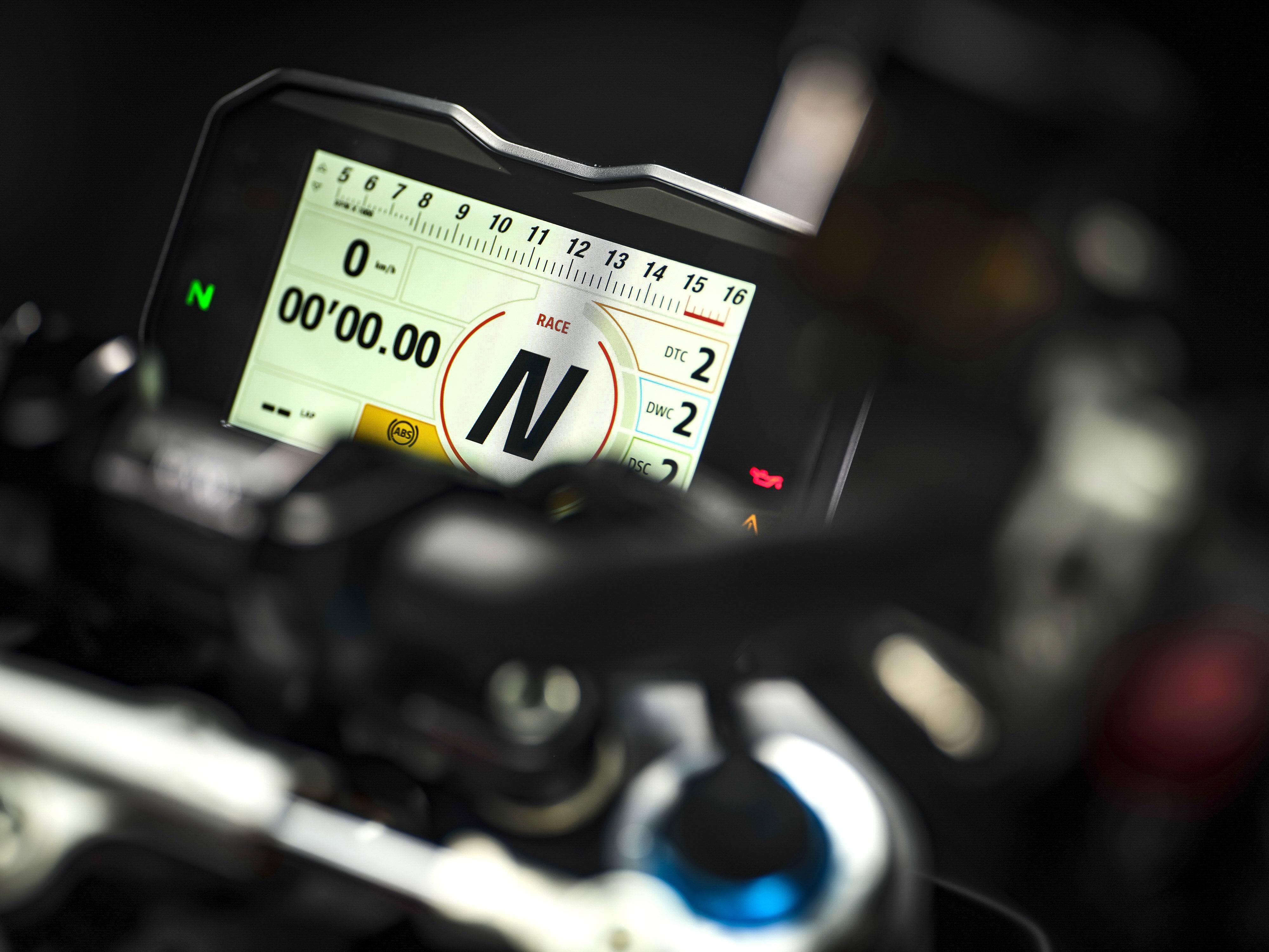 電控系統(tǒng)方面,除騎行模式之外,還采用了大量來自 MotoGP 衍生而來的技術(shù),集成了基于六軸 IMU(陀螺儀)感應(yīng)的 DTC 牽引力控制系統(tǒng),DSC 滑動(dòng)控制,DWC 車輪控制,EBC 發(fā)動(dòng)機(jī)控制,DES Evo 懸掛控制等。