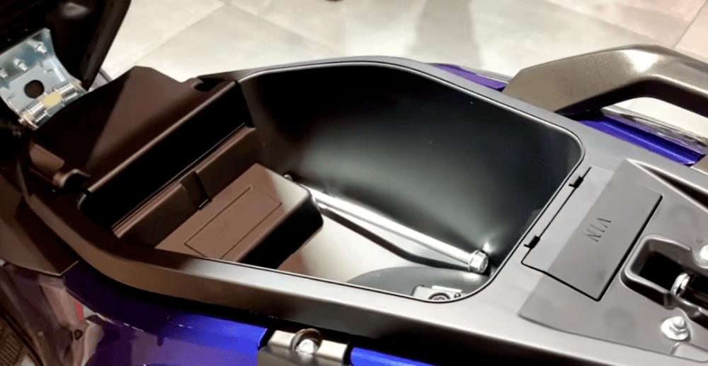 作為踏板車必考項的儲物空間方面我覺得RT1表現(xiàn)并不理想,其一是因為不知道出于什么原因RT1并沒有前置手套箱,在便捷性方面就略遜一些;其次是座桶空間,由于車輛電瓶也被安置在此處,所以座桶實際可用空間也比較有限,再加上座桶底部造型并不平整,所以如果想安置一定全盔的話應(yīng)該會比較費勁。這里建議賽科龍可以將電池安置在車頭部分,以此可以獲得更大的座桶儲物空間。