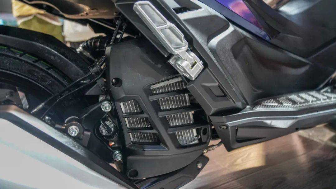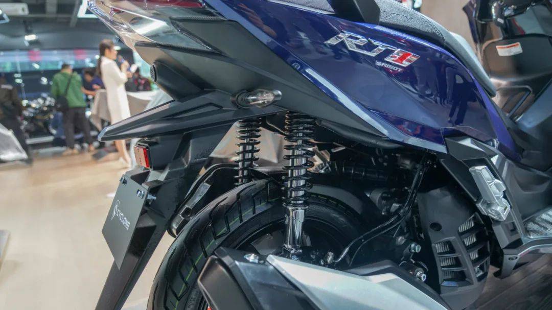 RT1同樣采用了帶有龍骨的車架設(shè)定,好處是車架剛性更強,能提供更好的運動性能,但壞處也顯而易見,就是在在實用性上會略遜于平踏車款。與多數(shù)同結(jié)構(gòu)的踏板一樣,RT1的油箱也位于龍骨處,容積為9L,按照經(jīng)驗來說,應(yīng)該能給這臺小車提供近400km的續(xù)航能力。