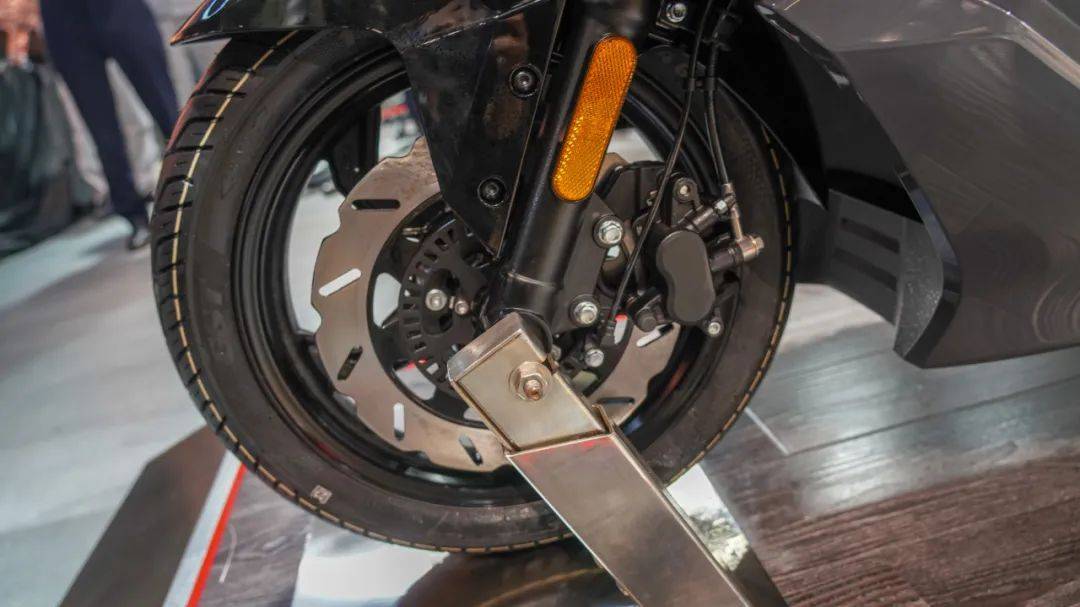 行走系統(tǒng),RT1配備前110/80/14,后120/70/14尺寸半熱熔輪胎,更大的輪胎也就代表這臺車擁有更高的通過能力以及更好的舒適性;配備正立式的前叉和雙邊后減震;前后均匹配單向雙活塞卡鉗,安全性配置上除了常見的雙通道ABS以外,還有上文我們提到過的可關(guān)閉的TCS。
