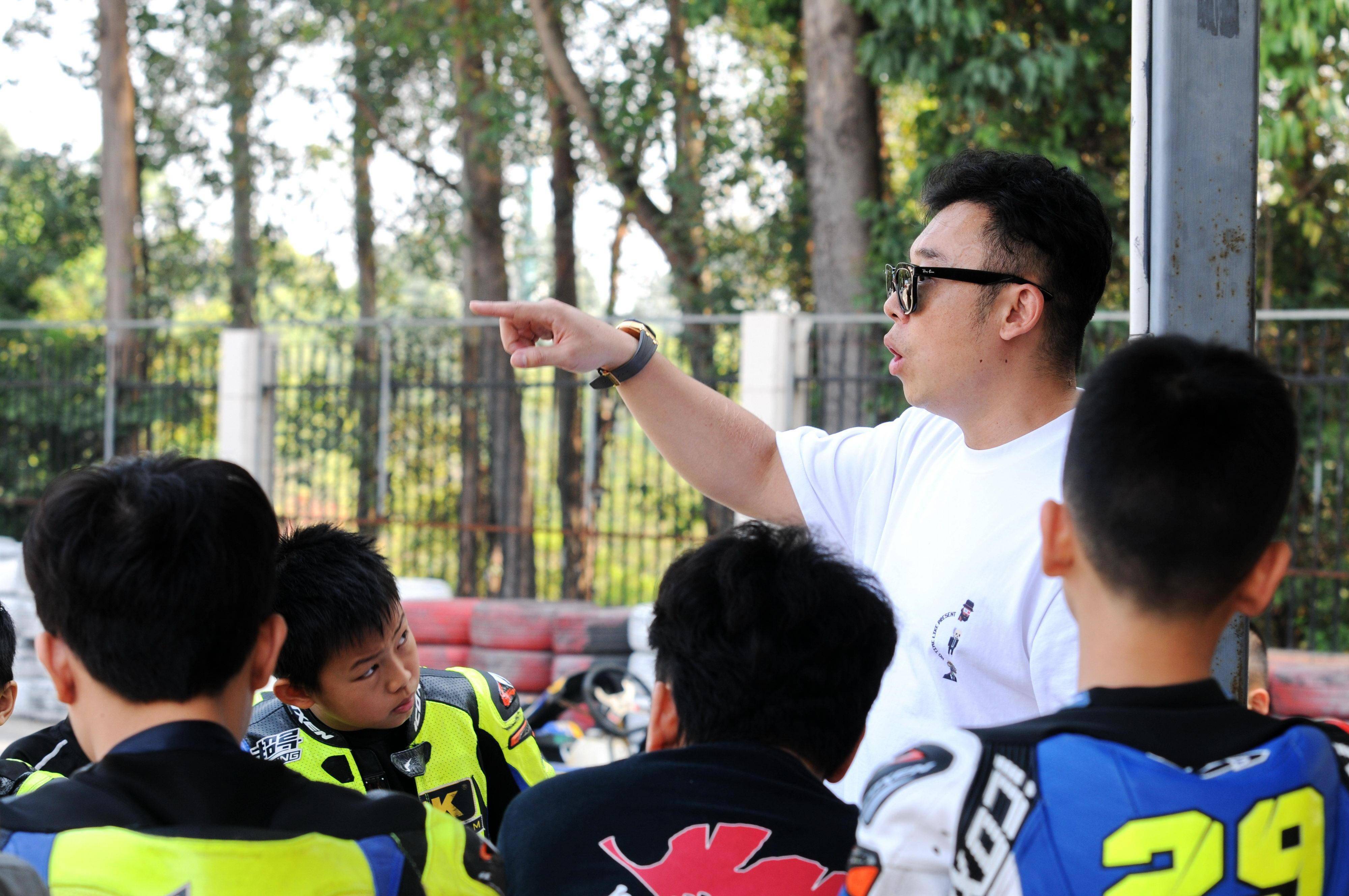 下面的圖片,在賽道指導(dǎo)、引領(lǐng)著大小車手的田田。