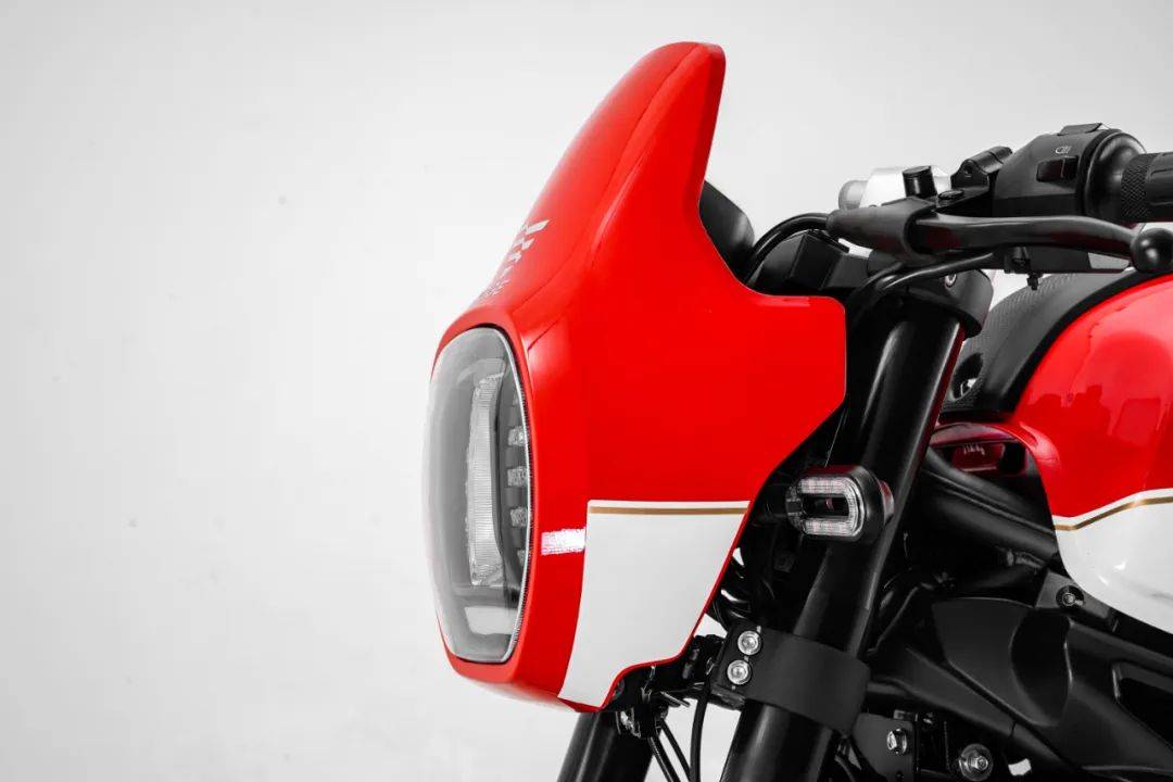 AC300 Café的外觀集聚Café Racer的優(yōu)雅與狂暴,整體風(fēng)格更加激進。復(fù)古頭罩調(diào)性十足,并給予用戶相當大的改裝空間;尾部獨立后座設(shè)計,可快速換裝競技后駝峰,賽道氛圍拉滿;賽道紅、英倫藍兩款全新拼色版花,將經(jīng)典復(fù)古與激情競技融于一身。