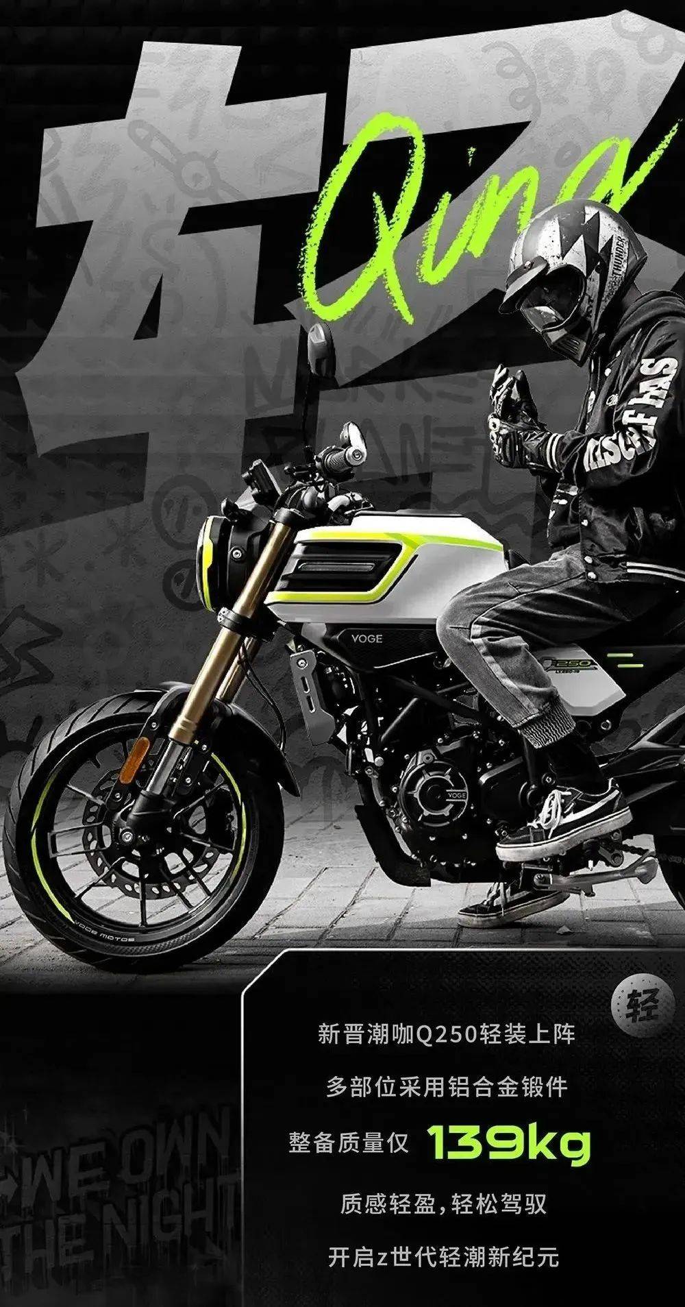 Q250采用輕量化設(shè)計理念,整備質(zhì)量僅139kg!手把、上下連接板、腳踏等多部位使用鋁合金鍛件,為國內(nèi)同排量級最輕機車。