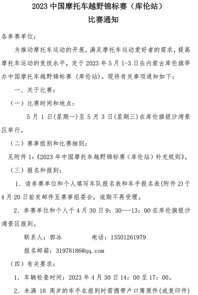 2023中國(guó)摩托車越野錦標(biāo)賽(庫倫站)比賽通知