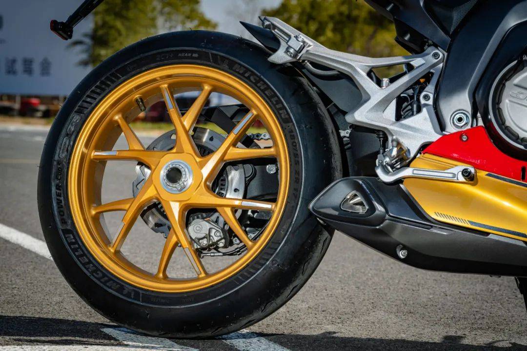 首先,在賽道里這款車是給了我一個驚喜的,我沒想到這個輪胎的抓地力非常的好。大家可以看一下這個輪胎的胎紋它是能夠兼顧街道和賽道的,這個輪胎的側(cè)面很光滑,就非常非常接近賽道的光頭胎。所以是可以直接拉下賽道的,這點我覺得是非??孔V。在壓彎的時候給我很多的信心,就是抓地力特別好。