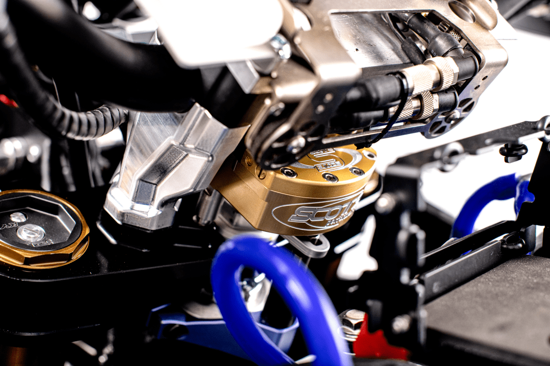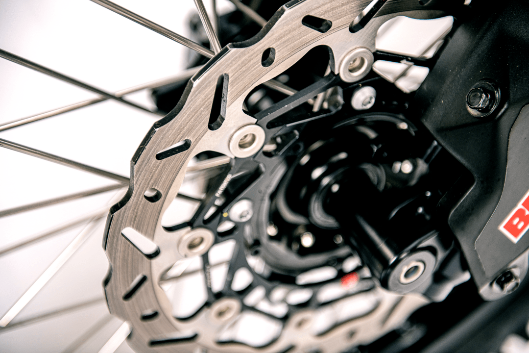 7、經(jīng)過(guò)簡(jiǎn)化的主線束,換裝了鋰電池,對(duì)應(yīng)拉力賽的儀表板和新的 LED 燈光系統(tǒng),輻條經(jīng)過(guò)強(qiáng)化的鋼線式前后車輪;