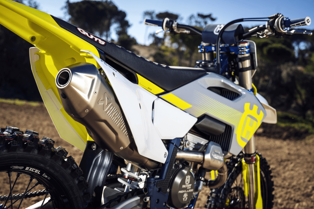車體使用一副鋼制車架,符合人體工程學(xué)設(shè)計(jì)的車身,WP 配套的懸掛系統(tǒng),Brembo 布博配套的前后剎車和液壓離合器,除燃料之外的整備重量為 102 公斤。與現(xiàn)行的 2023 款相比,新的 2024 FC350 有一個(gè)新的車身圖案,前后懸掛系統(tǒng)的設(shè)置經(jīng)過了修改,此外、鞍座外表還換上了有著更好附著力的面料。