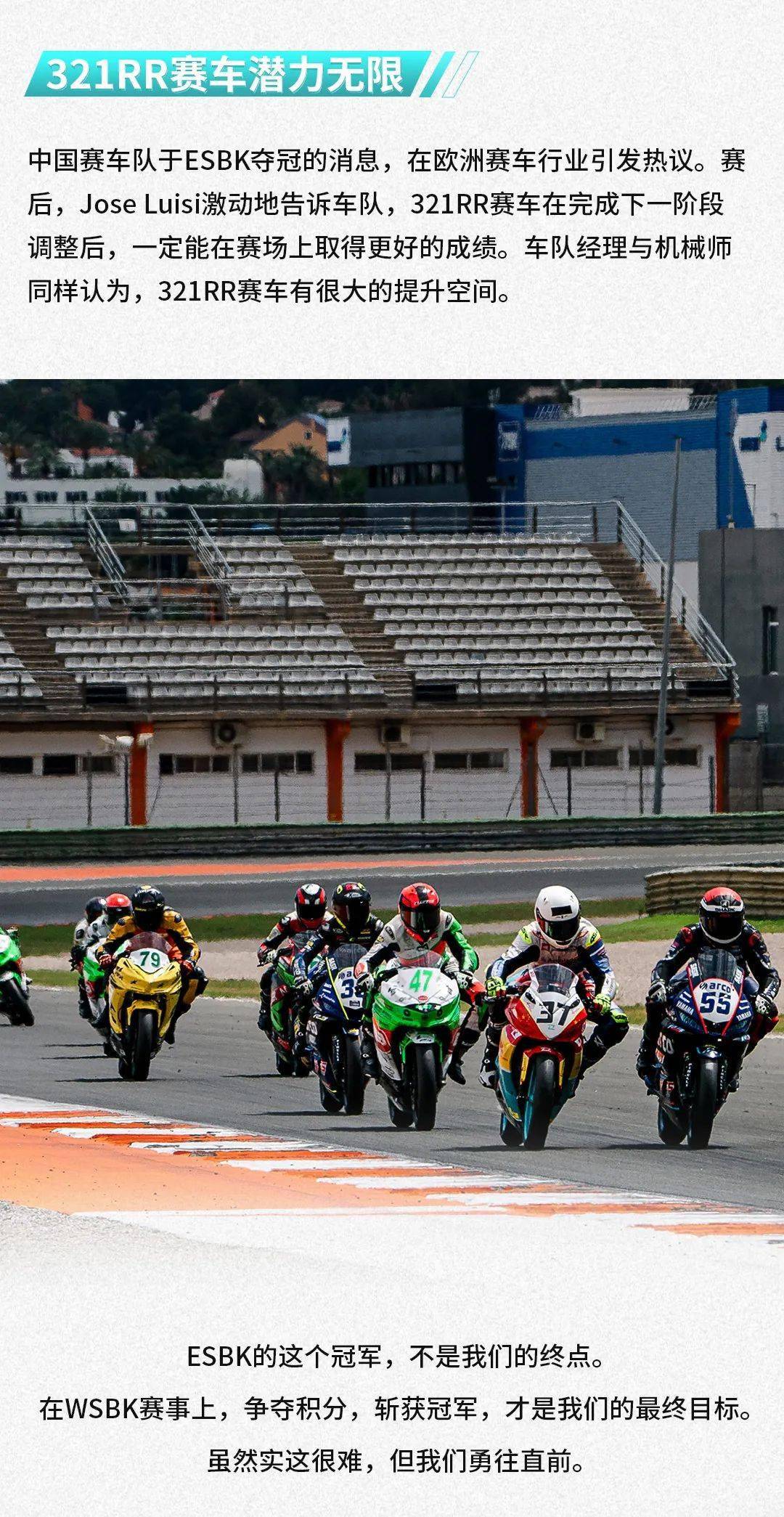 核心提示:中國賽車隊駕駛321RR賽車斬獲ESBK冠軍