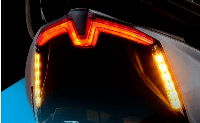 “M”造型的LED燈組將左右兩側(cè)的日行燈帶與遠(yuǎn)近光燈腔融合一體,點亮后辨識度很高。同時轉(zhuǎn)向燈被融合在了車頭的殼體內(nèi)部,保證了車輛造型的整體性。車輛長寬高尺寸分別為2000*770*1120mm,加長的軸距達(dá)到1380mm,坐高為770mm,提到高速穩(wěn)定性和長途巡航舒適性。