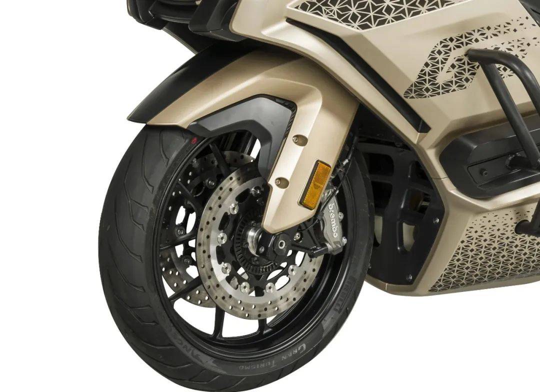 5、高規(guī)格安全配置:前后剎車均采用了意大利原裝進口Brembo制動卡鉗,制動性能優(yōu)越,前四活塞后雙活塞卡鉗,可靠性、安全性高。標配博世雙通道ABS防抱死系統(tǒng)。為進一步提升車輛操控性,還采用了懸掛軸后平叉軸的共軸設計,使發(fā)動機與車架的整體強度更高,更安全,操控性更出色。