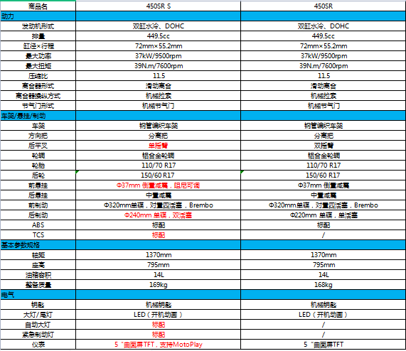450NK搭載同級最獨(dú)特的270°曲軸雙缸引擎,峰值功率37kW,峰值扭矩39N.m,四秒俱樂部和二檔破百。450NK和800NK一樣,箭頭般犀利的前臉搭配壯碩的油箱造型,戰(zhàn)斗感滿滿,星光白配色與最經(jīng)典的春風(fēng)藍(lán),極具辨識度。