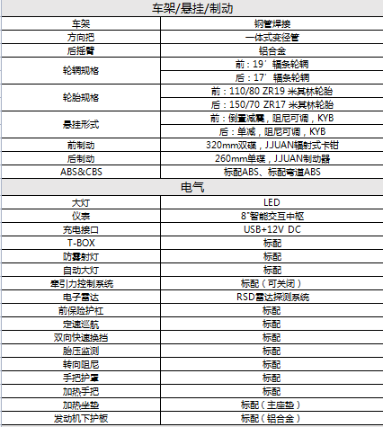 顏值提升,操安性提升,后剎車升級為240毫米制動(dòng)盤+雙活塞卡鉗,制動(dòng)力更強(qiáng)勁;前避震升級可調(diào)阻尼,TCS牽引力控制系統(tǒng),防止后輪打滑。
