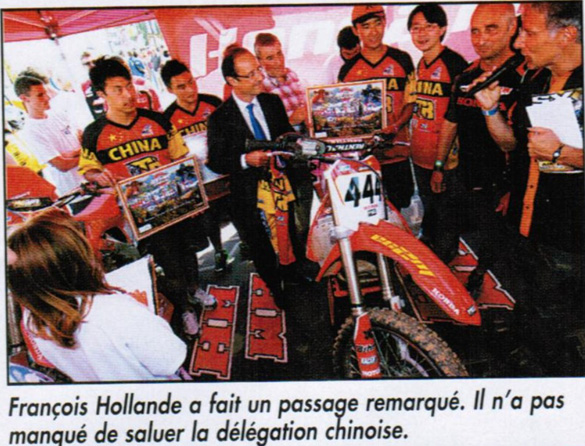 當(dāng)?shù)弥?,奧朗德當(dāng)選法國(guó)總統(tǒng)的消息后,順德北滘賽車隊(duì)的賴智豐興奮激動(dòng)不已,想起去年自己代表中國(guó)越野摩托車隊(duì)在法國(guó)參賽期間,還與奧朗德有過(guò)近距離的接觸呢!