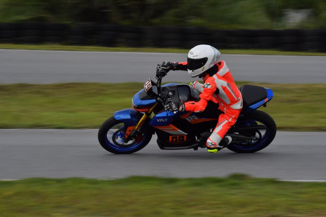 為了秉承賽事精神,VFLY飛越也攜手自家產(chǎn)品下場賽道,參與真實競賽,以獲得“浸入賽道”的奇妙感知。在專業(yè)組比賽中,VFLY飛越兩款賽道電摩表現(xiàn)搶眼,憑借迅猛的直線加速,優(yōu)美的彎道姿態(tài),給人留下深刻印象。而VFLY飛越帶來的神秘車型也實力不俗,參與改裝街車單缸組,與燃油車一同公開競逐,更是拿下了第三的戰(zhàn)績。