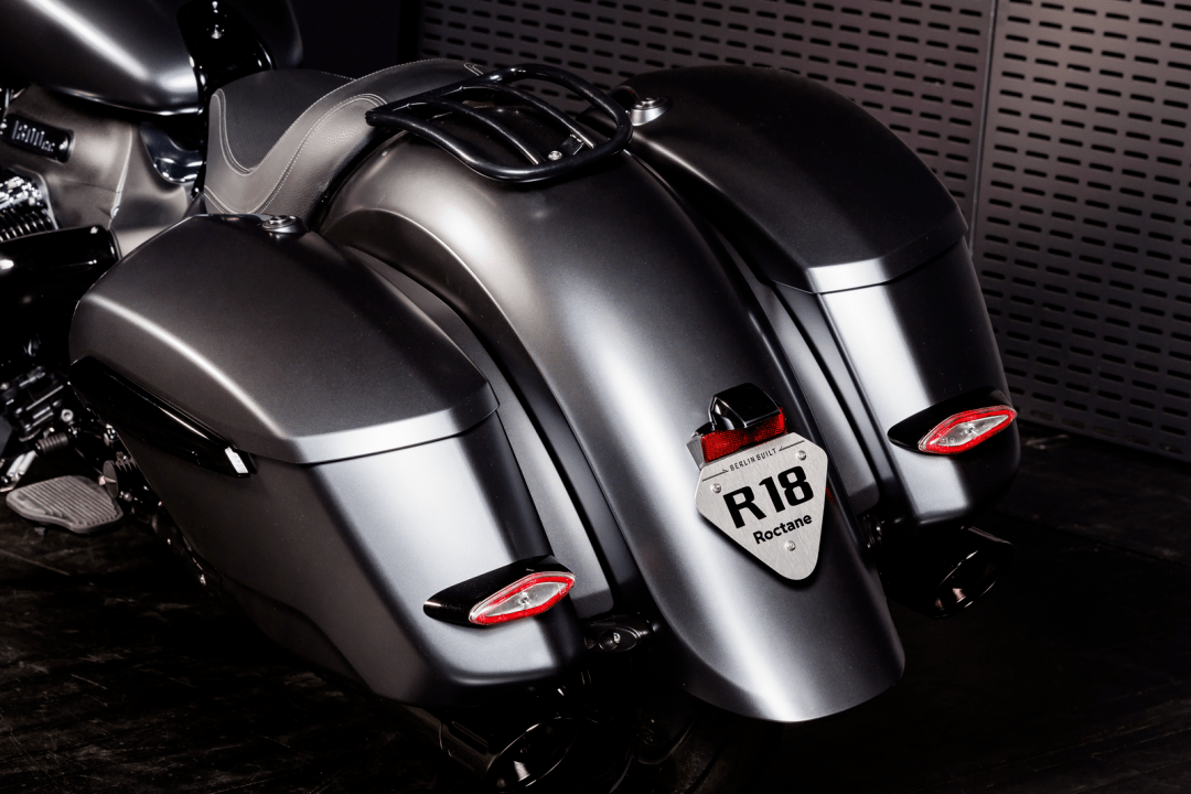 外部風(fēng)格上,新的 R 18 Roctane 有著巡航 + 旅行車綜合體的 Bagger 風(fēng)格,圓滑的尾部線條與 R 18 B 相似,整體造型幾乎就是拆除了車頭大型整流罩之后的 R 18 B。