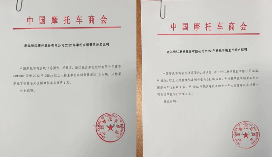 由于摩托車行業(yè)和汽車產(chǎn)業(yè)不同,行業(yè)銷量數(shù)據(jù)沒有權(quán)威的公布平臺,加上買賣合格證等多種因素,普通用戶是無法獲得各企業(yè)精確銷量數(shù)據(jù)的,因此錢江的在中大排摩托車市場的銷售排名,中國摩托車商會(可能是唯一掌握絕大部分摩托車企業(yè)精確銷量數(shù)據(jù)的機(jī)構(gòu))還出具了證明。