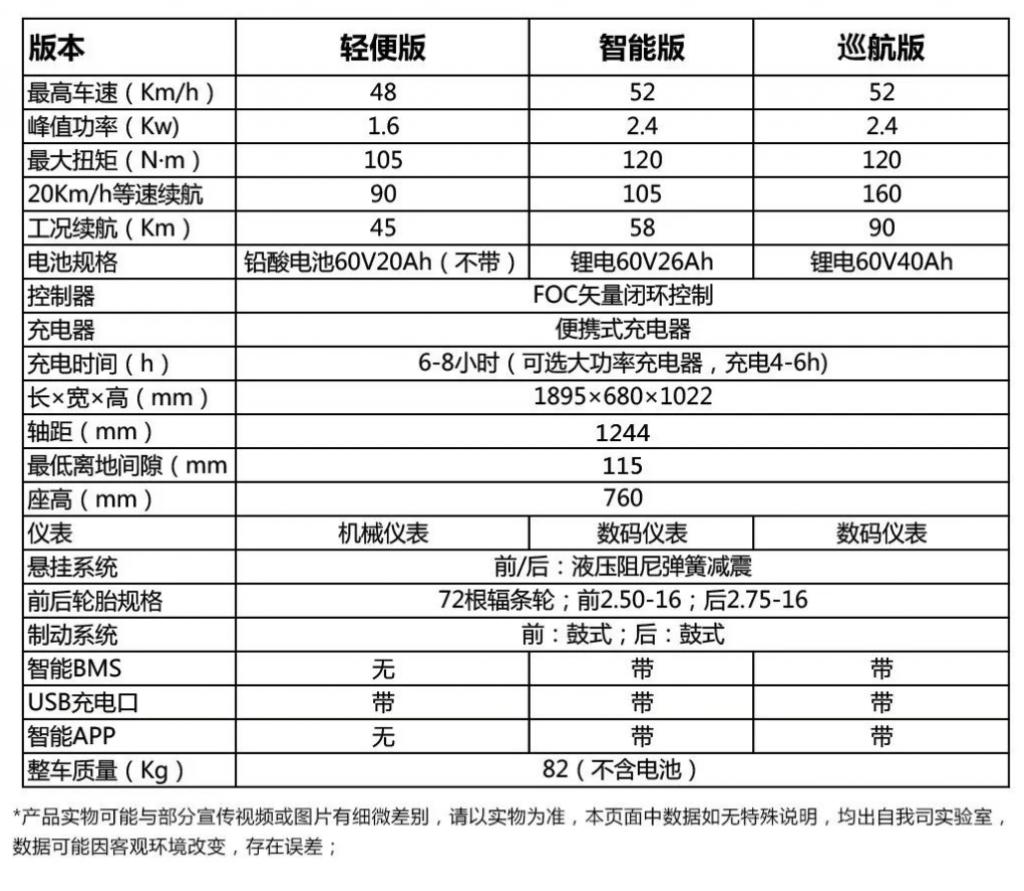 巡航版(1500W,60V / 40Ah 鋰電,52Km / h,數(shù)碼儀表):11580 元