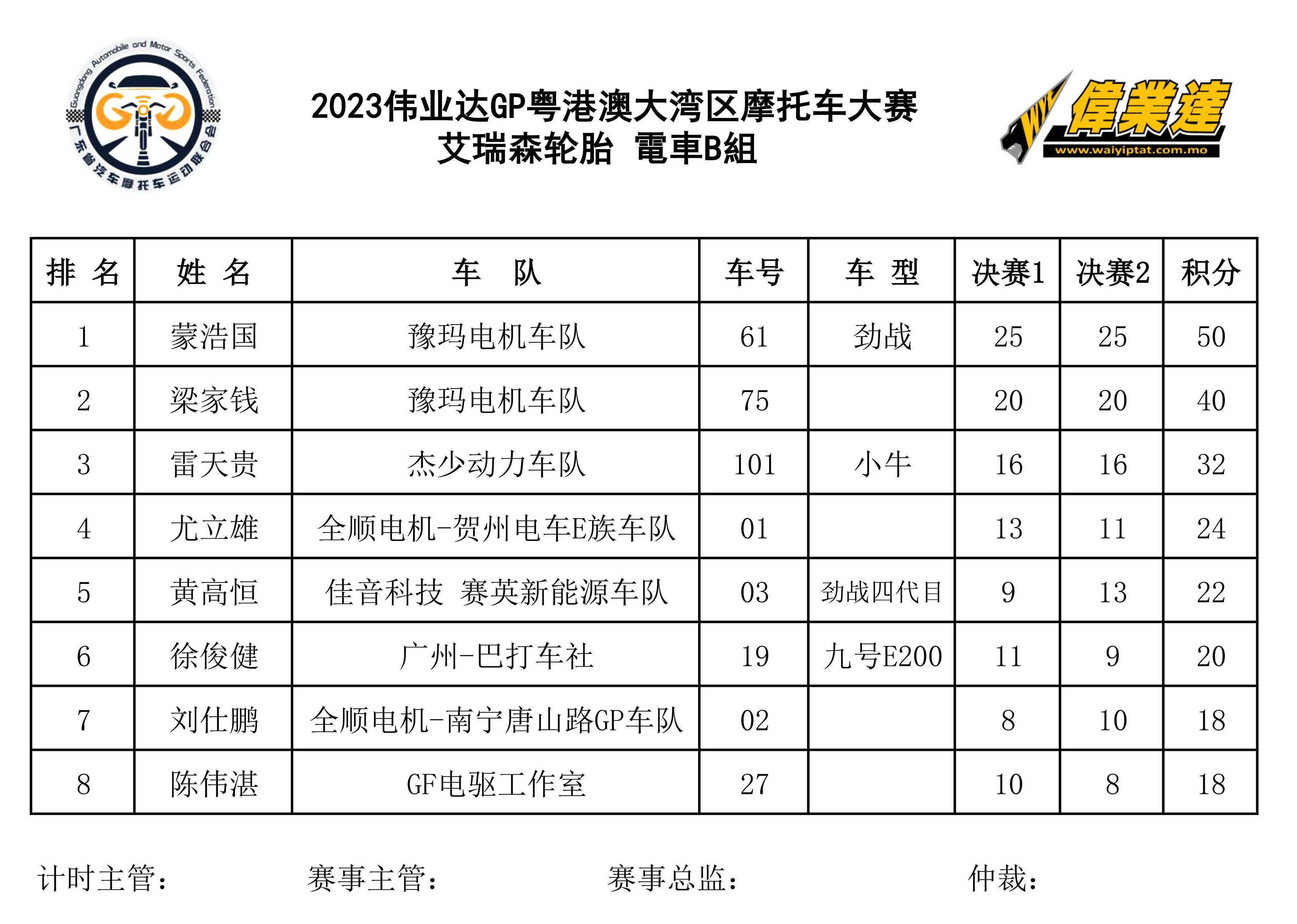 綜合兩節(jié)比賽的成績,全順賽車隊(duì)的薛文俊以 45 分,獲得本站比賽電車 A 組的冠軍。B 組方面,雷天貴拿到了季軍,尤立雄獲得第四名,劉仕鵬獲得第七名??釤岬母邷刂?,全順高性能賽車電機(jī)在整個比賽期間、均沒有出現(xiàn)故障,高度的可靠性和極限級的性能,助力車手們?nèi)幦『脩?zhàn)績。