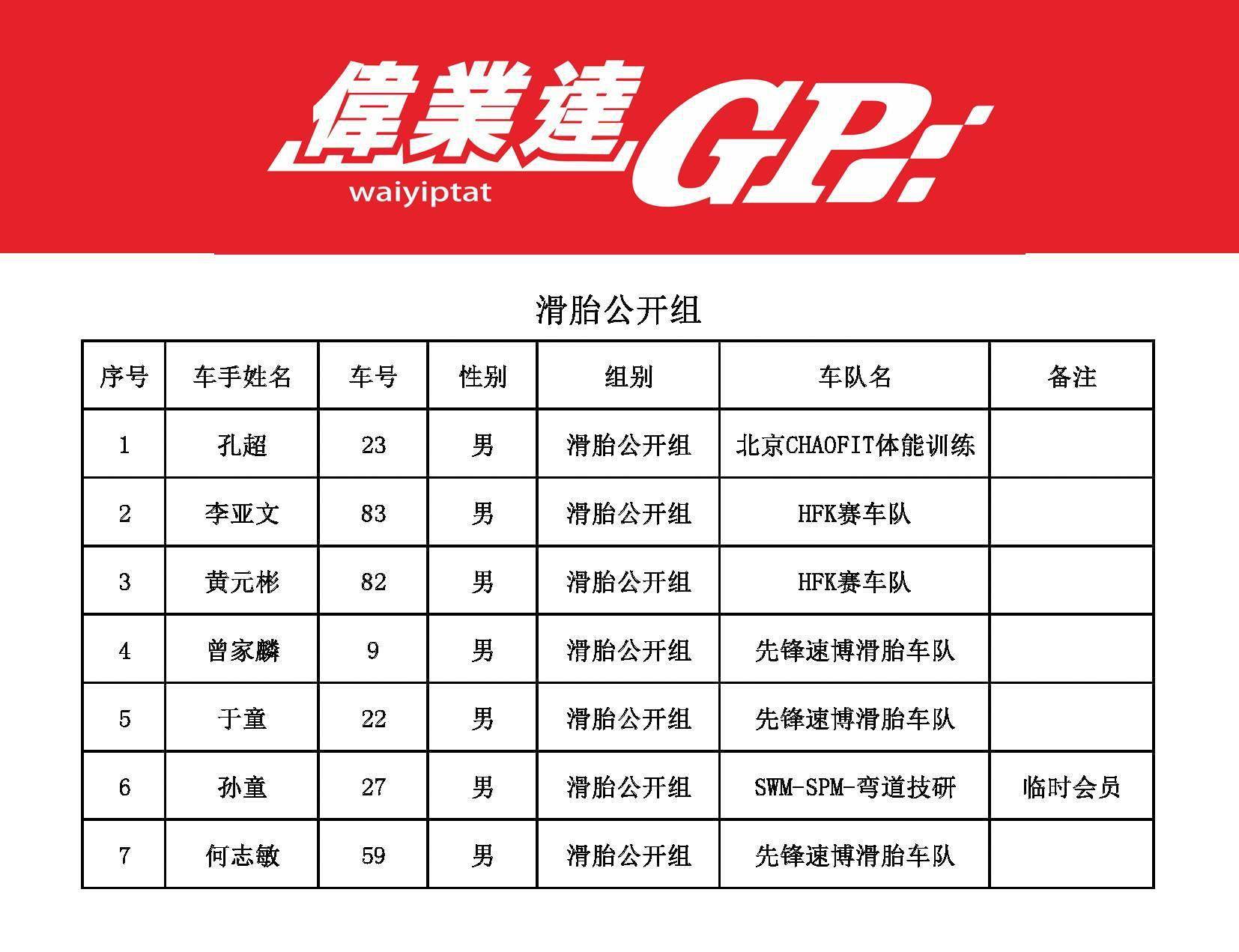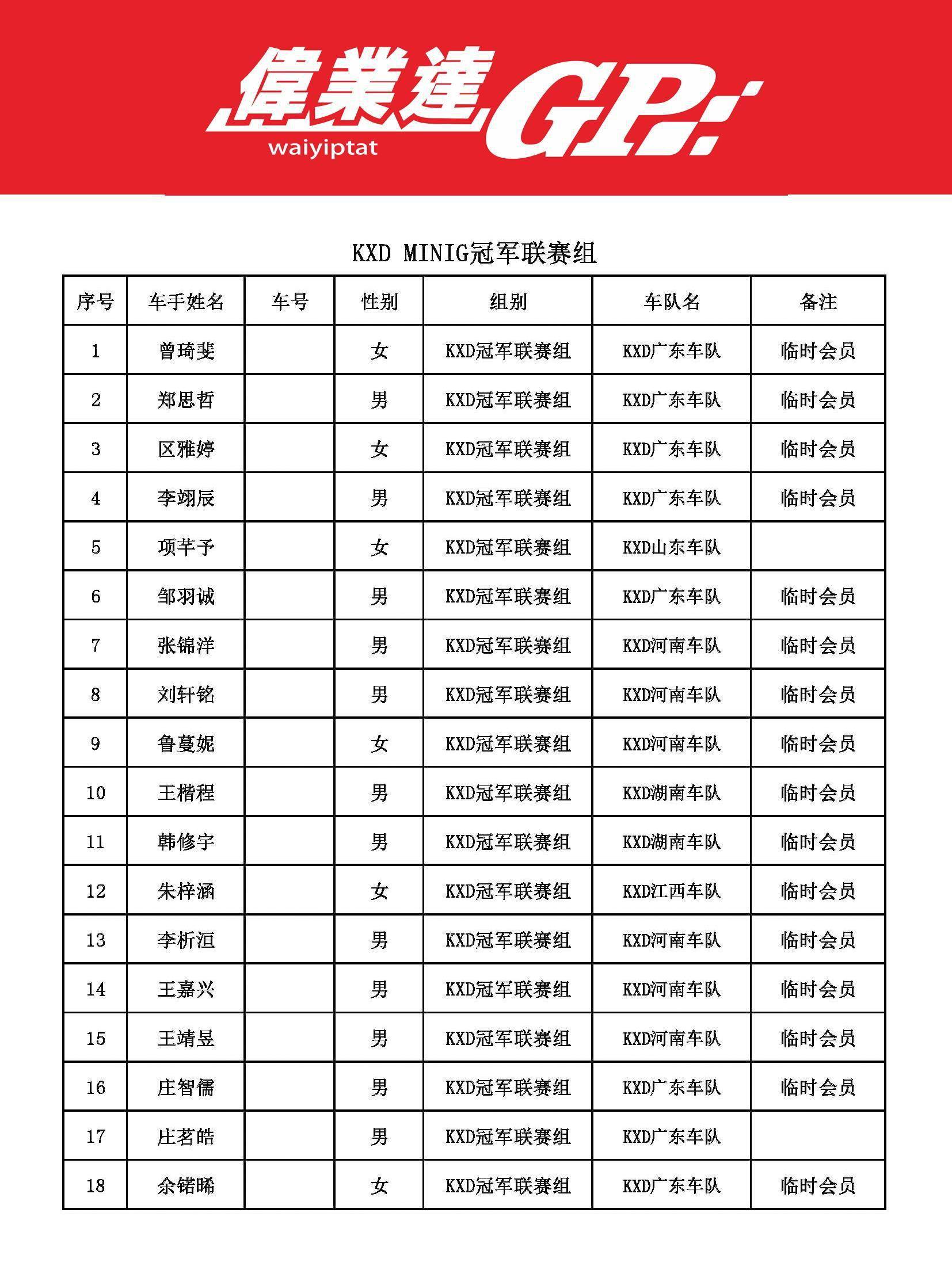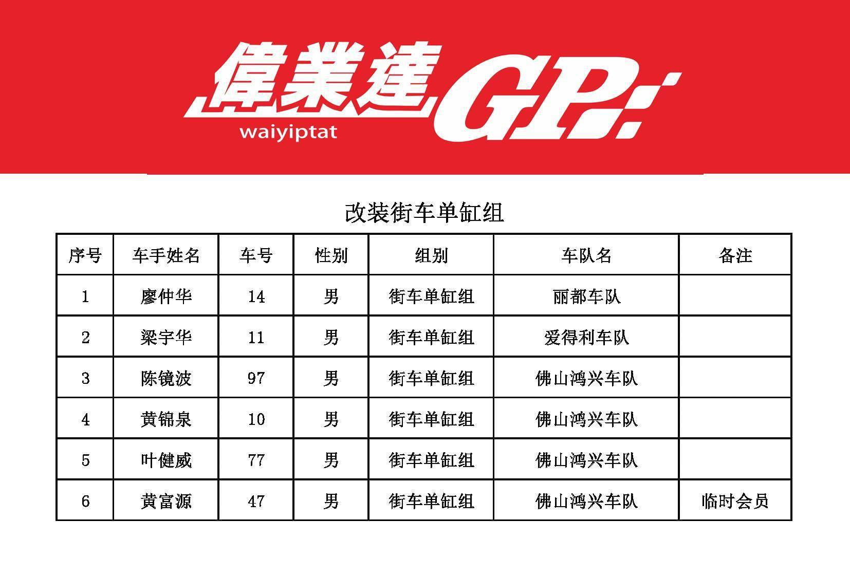 2023 偉業(yè)達(dá) GP 三水偉業(yè)達(dá)杯第二回合:參賽名單