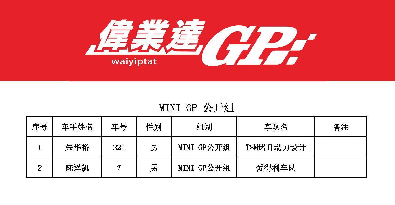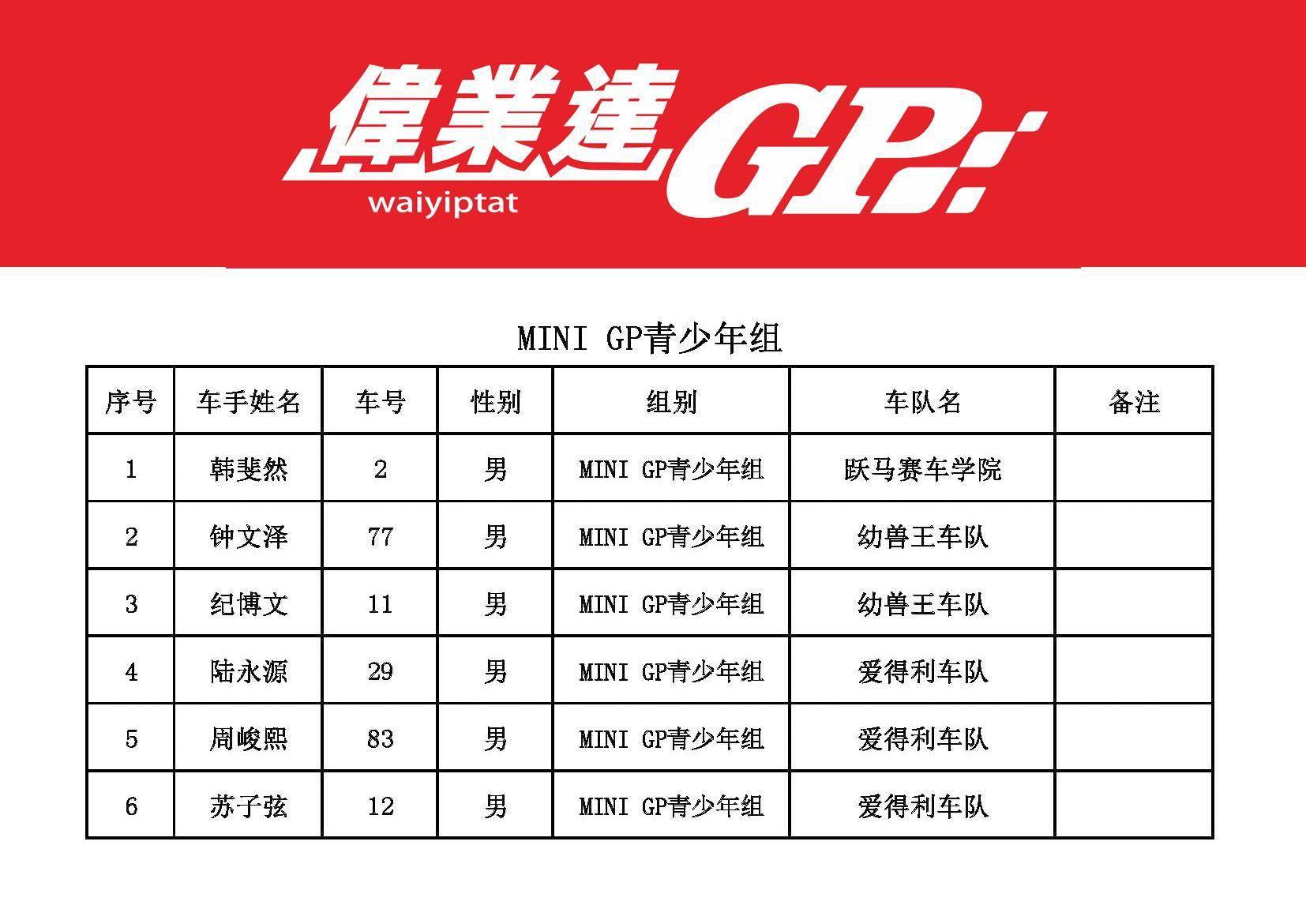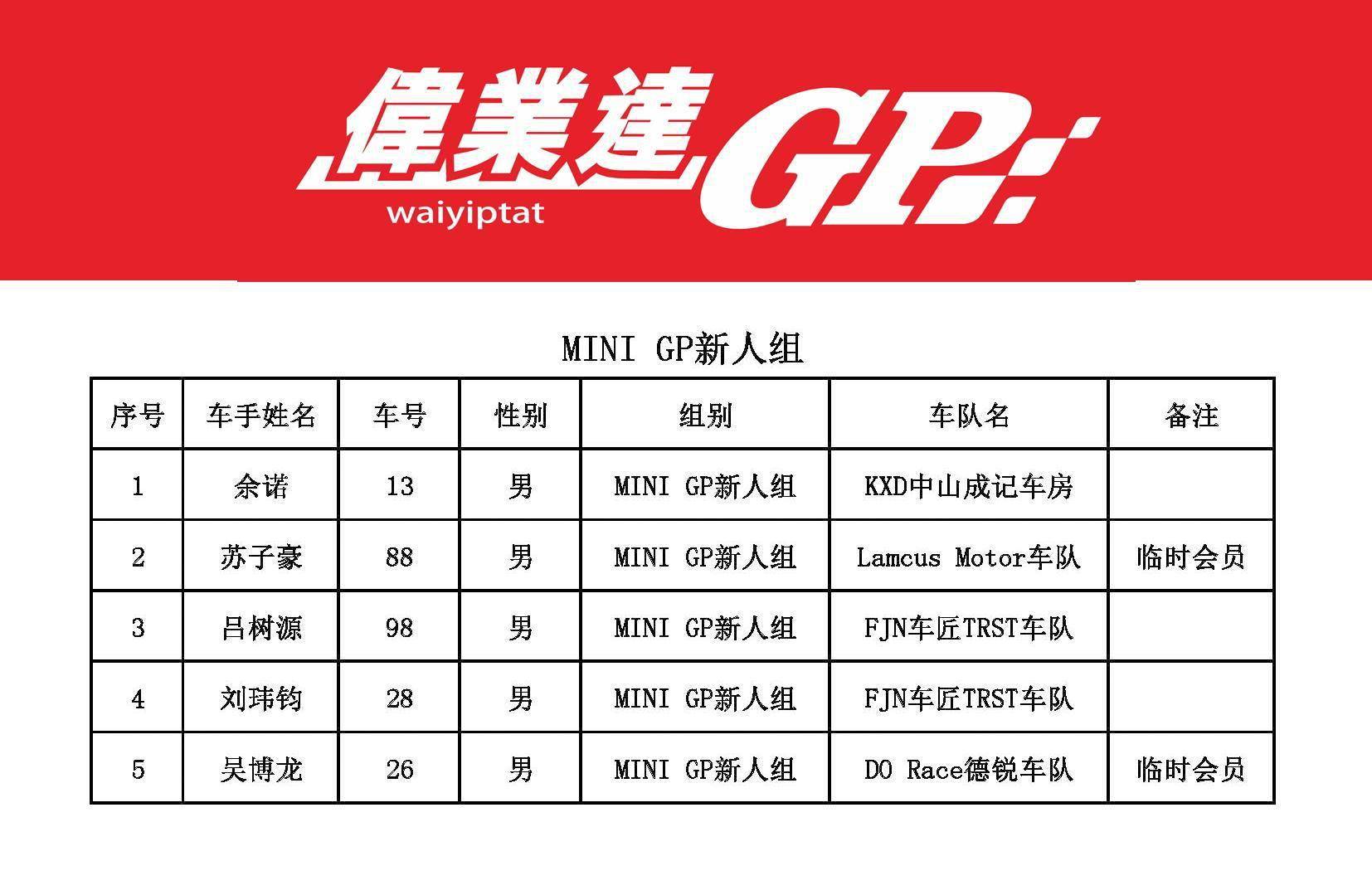 2023 偉業(yè)達(dá) GP 三水偉業(yè)達(dá)杯第二回合:參賽名單