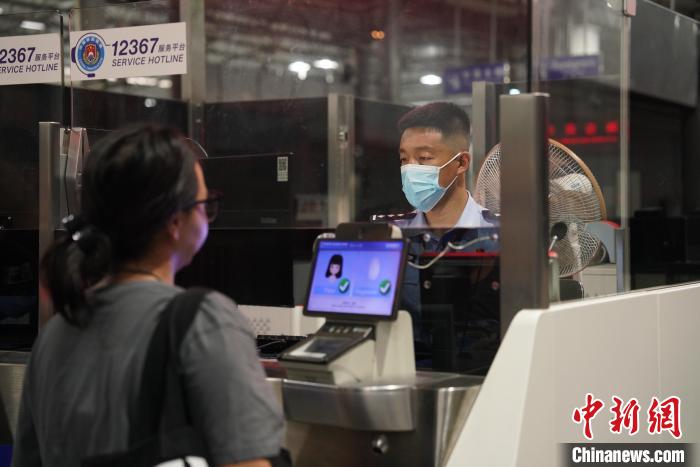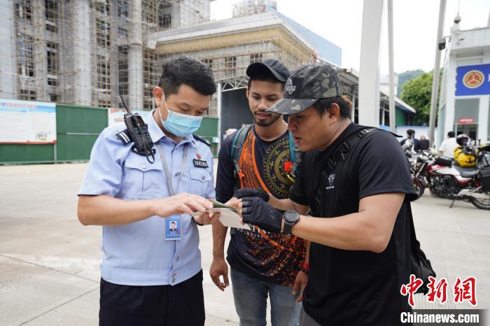 8月14日,民警指導(dǎo)車隊人員填寫入境查驗卡。王研攝