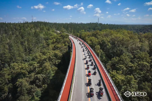 9月2日上午舉辦的哈雷戴維森®120周年摩托車大巡游,為此次貫穿全天的慶典活動拉開了序幕。路線從活動主場地長白山魯能勝地出發(fā),途經(jīng)長白山原始深林,并于享有“松花江上第一橋”美譽的中國綠發(fā)勝地橋結(jié)束,全程60公里。千臺哈雷摩托車在沿途人群的歡呼中馳騁山野,各方陣及H.O.G的騎士們一起感受著騎行帶來的暢快,浸享秋日美景。