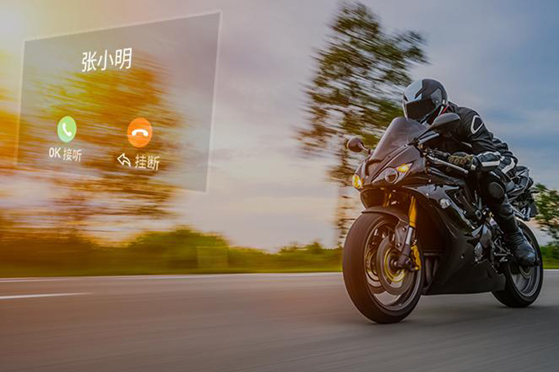 頭盔智能HUD是將騎行所需要的所有信息,以AR技術(shù)呈現(xiàn)在視線前方,加上高清透明的顯示效果,類似于在人眼前3米處有一個高透的成像界面,用眼睛的余光就可以看到來電人信息、導(dǎo)航路線、后視鏡畫面等,騎車過程不用再分心靠聽去獲取信息,這是頭盔穿戴裝備的一次技術(shù)革命。