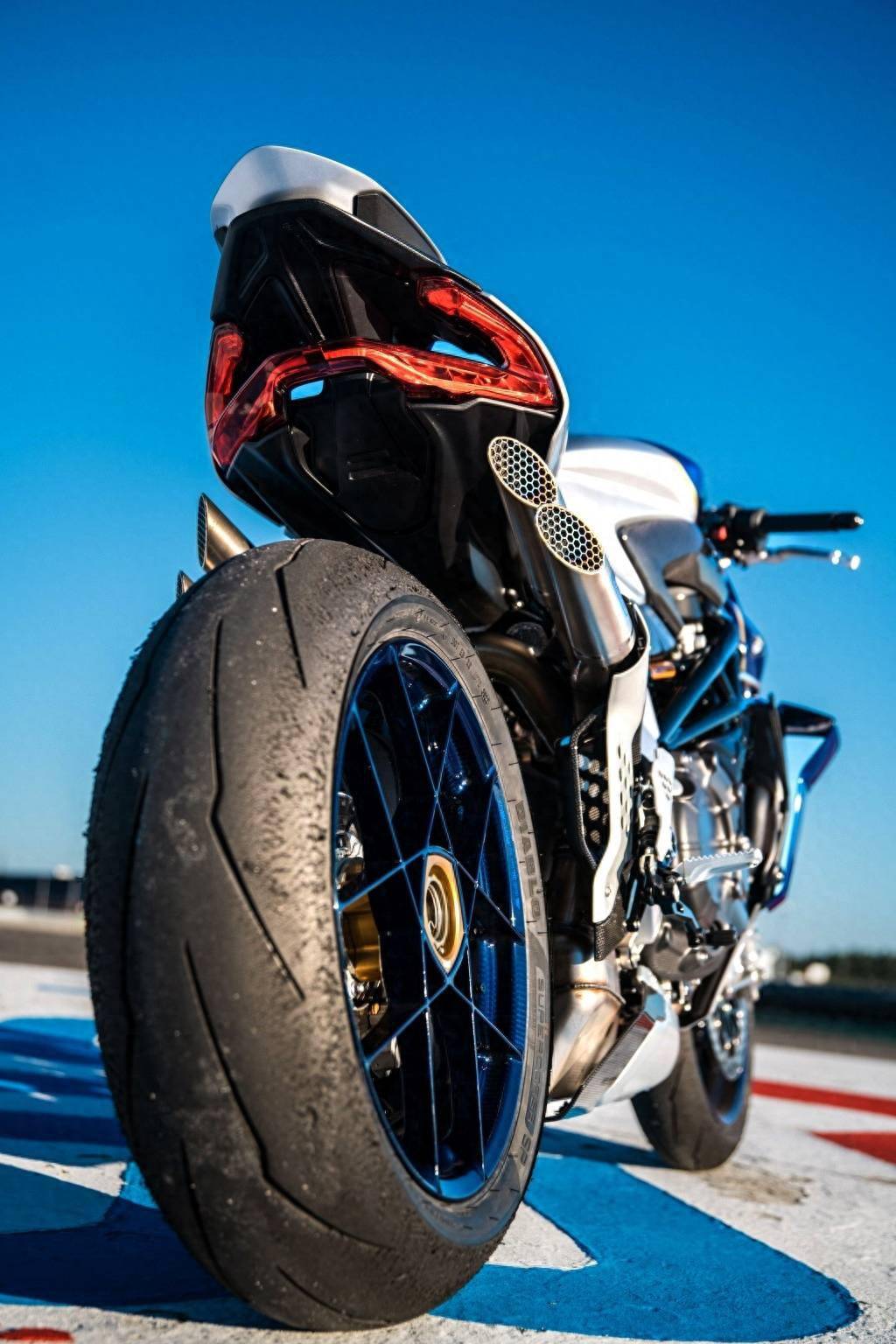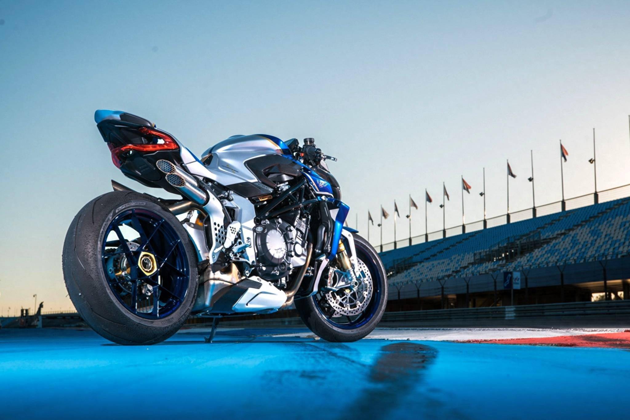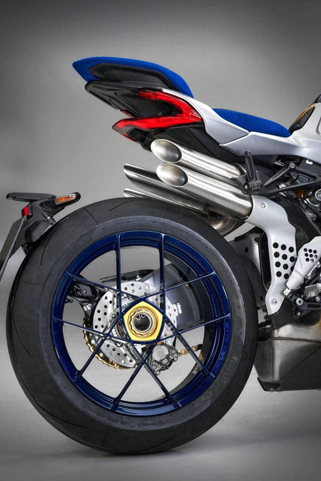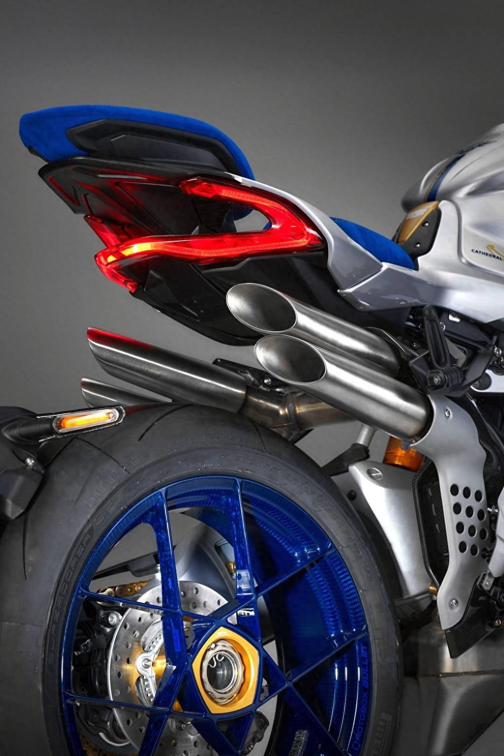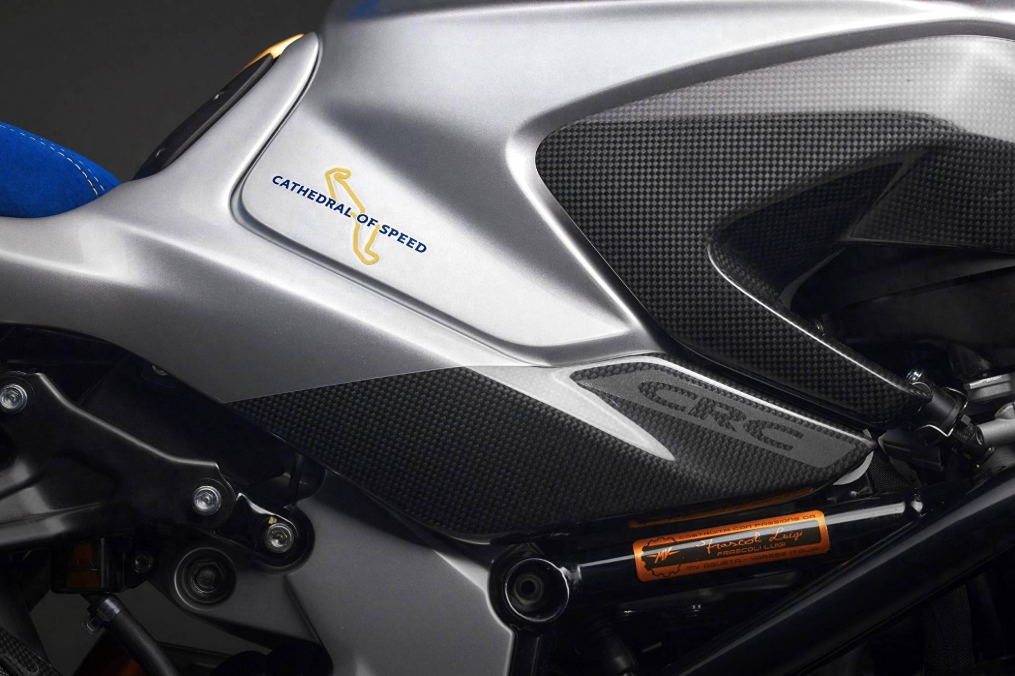 新車基于 Brutale 1000 RR 修改而成,沿用了 RR 版現(xiàn)成的直列四氣缸、排氣量 998 cc、峰值馬力輸出 208 匹的發(fā)動(dòng)機(jī),車體采用了藍(lán)色、銀色和金色混合的獨(dú)特圖案,換裝了大量碳纖維制的組件、定制的藍(lán)色前后鞍座,車體多處帶紀(jì)念標(biāo)志等,全車干燥重量(不含燃料和潤滑油、冷卻液等)為 180 公斤,略低于 RR 版的 186 公斤。