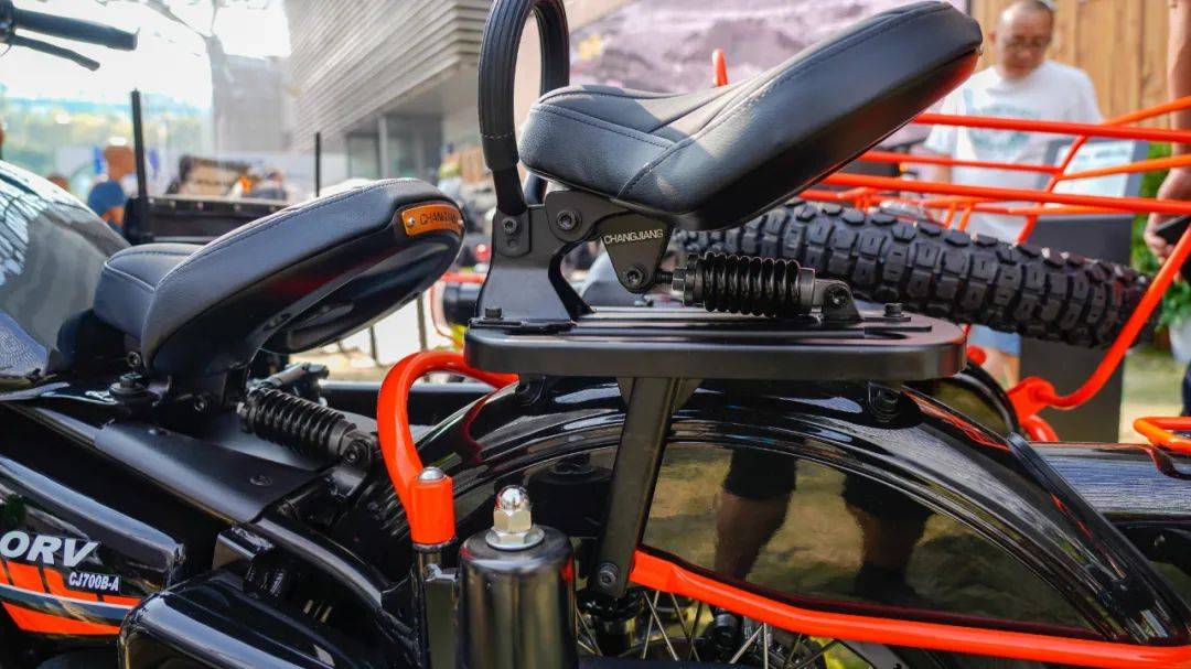 細(xì)節(jié)處理上V750這次可謂非常用心,坐墊經(jīng)過填充處理,乘坐感受良好,考慮到帶人的舒適性,經(jīng)過重新包覆的邊斗座椅,不僅支持靠背角度,座椅單獨(dú)前后多段式調(diào)節(jié),更是用上了真皮材質(zhì),挎斗與車架連接部分采用軟連接,做了有效的緩沖,在旅行途中的舒適度效果更優(yōu)。