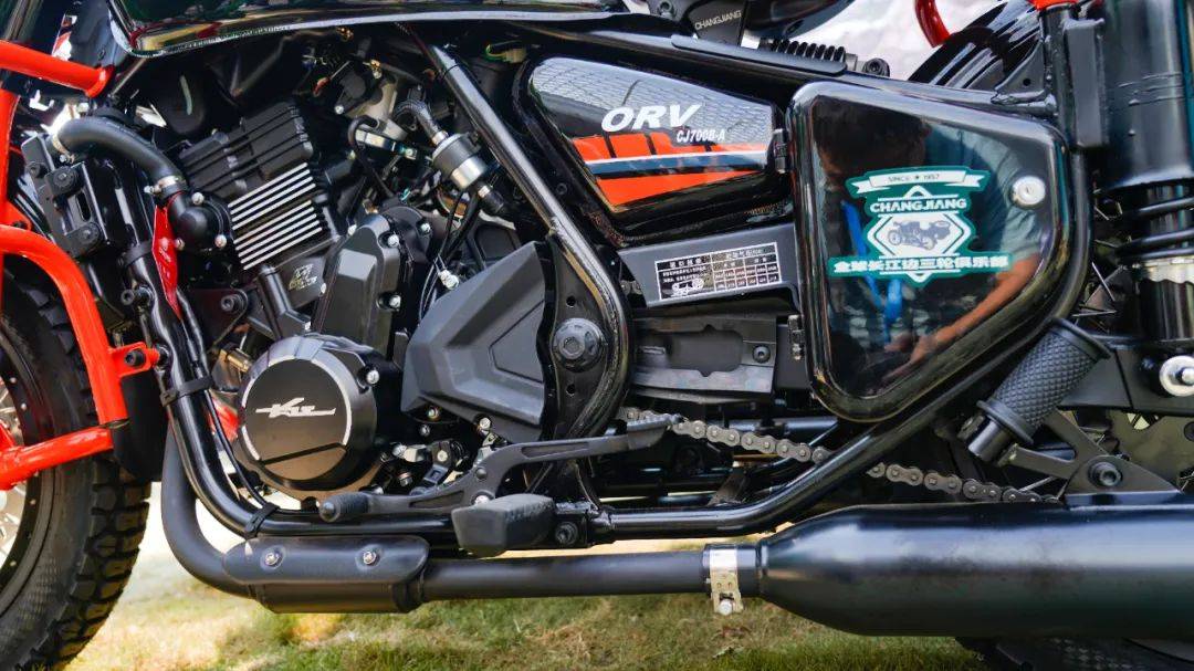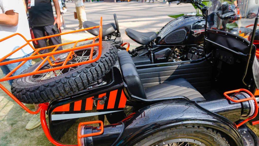 精彩仍未結(jié)束,同樣展出的還有CJ700烈焰版,相較于之前版本,主體的造型設(shè)計(jì)并未做太多更改,不同的是烈焰版加入全新的配色,致敬經(jīng)典軍挎外觀的同時(shí),讓整車觀感上更為熱烈,個(gè)性更為張揚(yáng)。