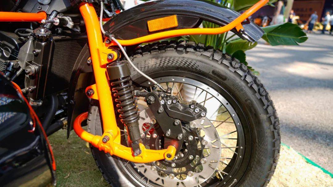 主車和邊挎都設(shè)計(jì)了個(gè)性十足的風(fēng)擋,邊車下面與底盤連接處單獨(dú)設(shè)有兩個(gè)減震,并包裹了橡膠套防塵,邊車的顛簸感會進(jìn)一步降低。
