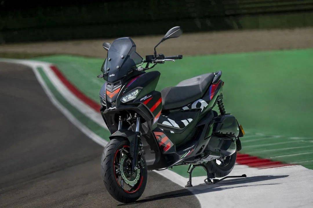 正如誕生于Noale賽事部門的MotoGP車型一樣,Aprilia SR GT Replica特別版的車輪輪輞漆成黑色,前輪槽上的紅色線條奪人眼球。為了與賽車精神相呼應(yīng),組件中還包括了應(yīng)用于運(yùn)動(dòng)型街道輪胎,而非其他版本Aprilia SR GT和SR GT Sport所搭配的“全地形”通用輪胎。