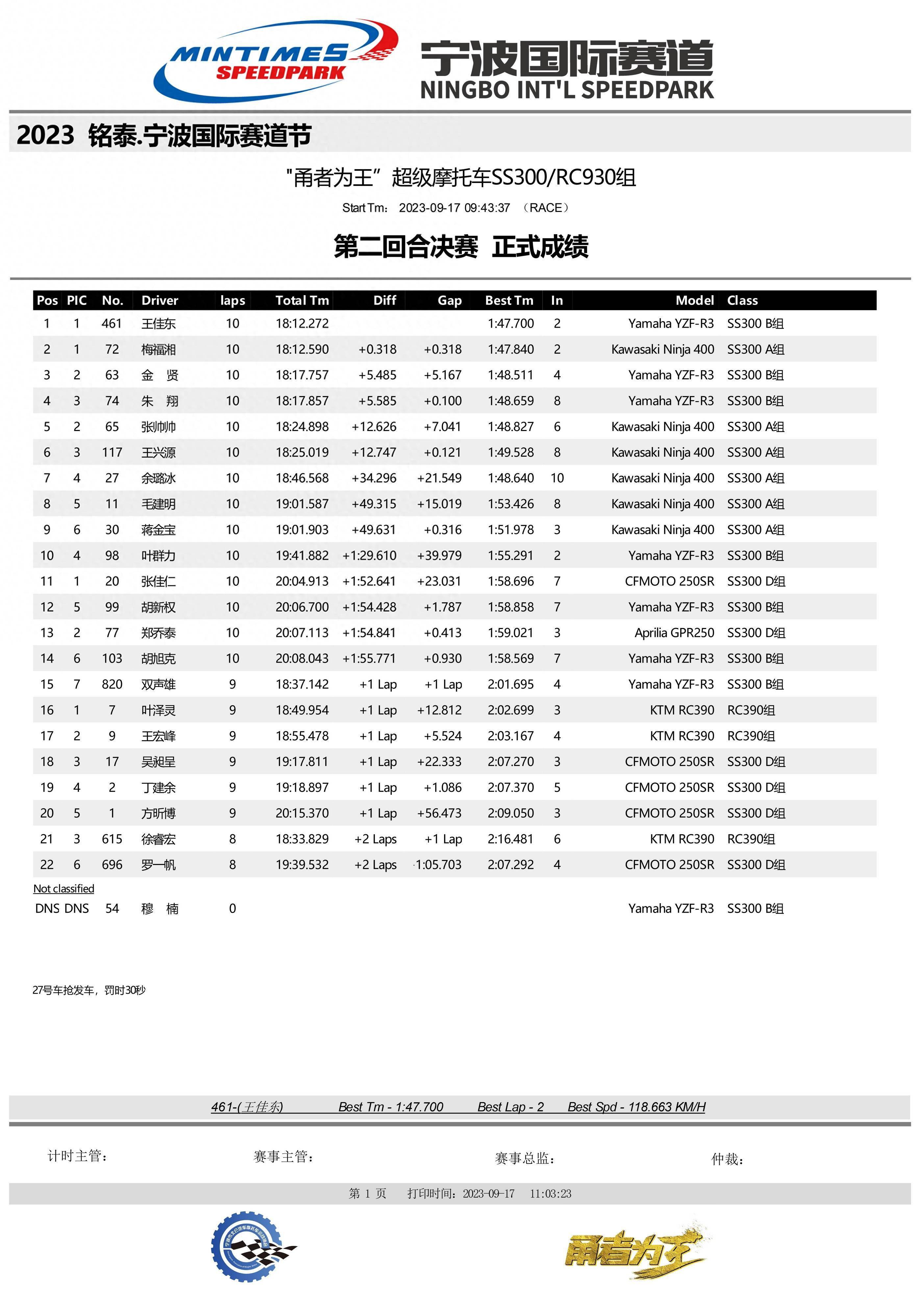 2023 甬者為王 超級摩托車嘉年華第三回合:成績與頒獎臺特寫