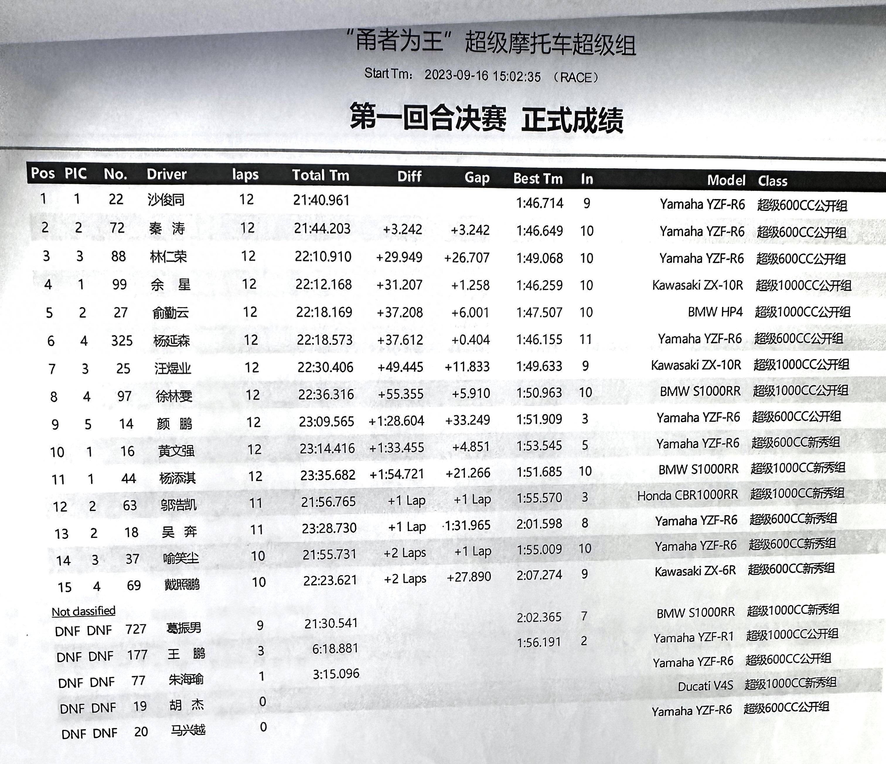 第一名:22 號,沙俊同/YZF-R6(雅馬哈中國賽車隊);
