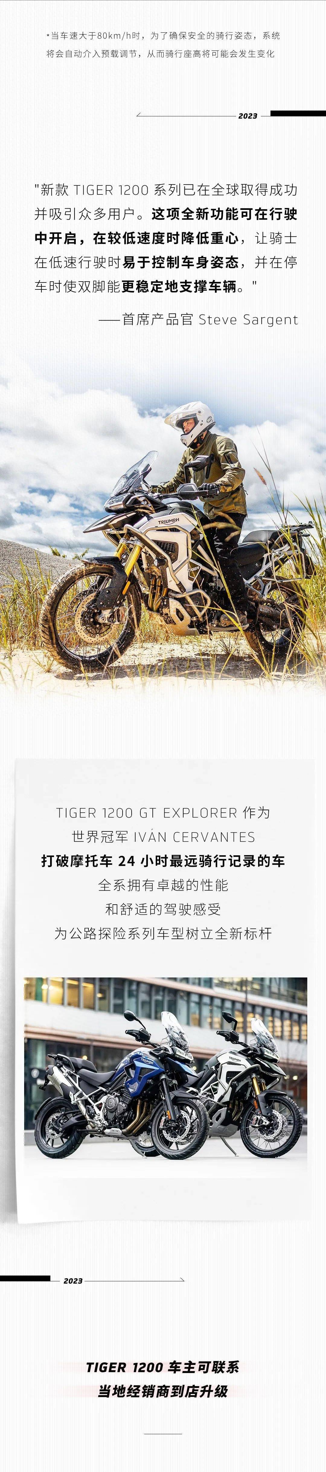核心提示:TIGER 1200 功能升級(jí)騎行座高降低!