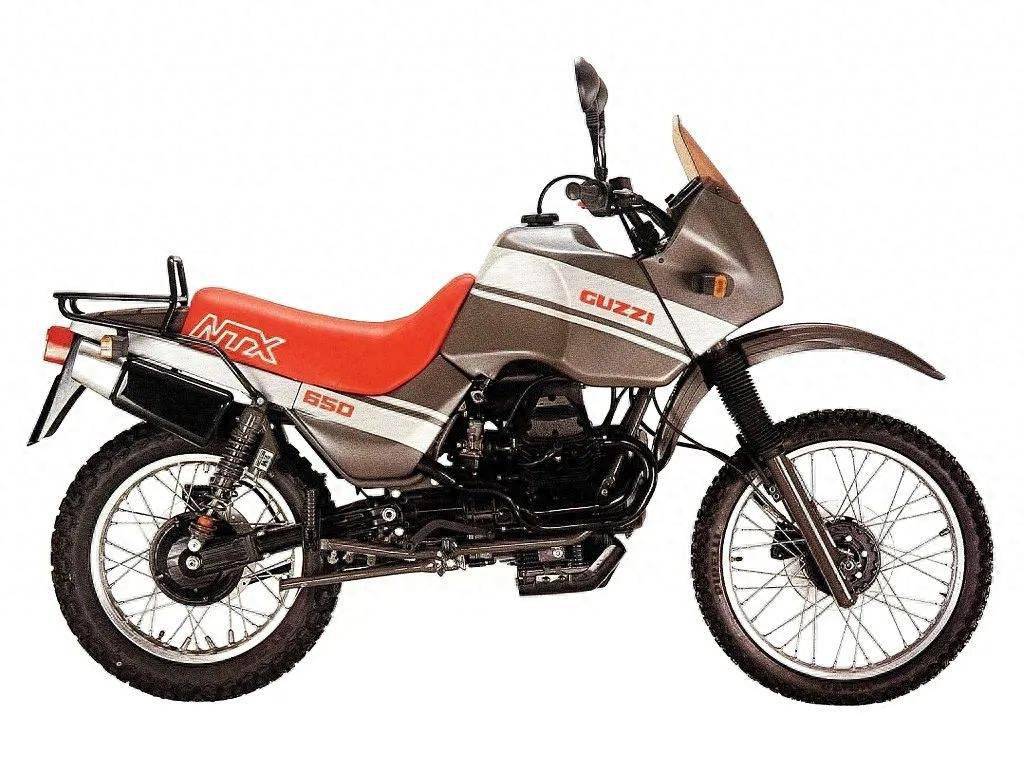 沿著兩用摩托車的道路,1986年,摩托·古茲又推出了NTX650。動(dòng)力心臟當(dāng)然是他們招牌式的橫置V2發(fā)動(dòng)機(jī),盡管摩托·古茲擁有4氣門汽缸頭,但是考慮到越野時(shí)的惡劣工作環(huán)境,為了確保長(zhǎng)時(shí)間工作可靠,仍然沿用了2氣門配氣機(jī)構(gòu)。同時(shí),摩托·古茲工程師修改了凸輪軸,強(qiáng)化了中段轉(zhuǎn)速范圍內(nèi)的動(dòng)力輸出,更勝任探險(xiǎn)越野。與V65的發(fā)動(dòng)機(jī)相比,NTX650采用了黑色噴涂,增加了外觀個(gè)性。在2只Dell’Orto PHF化油器的伺服下,這顆排氣量644cc的橫置V2動(dòng)力心臟最大功率為35kW/7400rpm,最大扭矩46Nm/6000rpm,可以驅(qū)動(dòng)NTX650以14秒左右的時(shí)間起步加速跑完400米,終點(diǎn)速度為145km/h,極速則可達(dá)到165km/h。