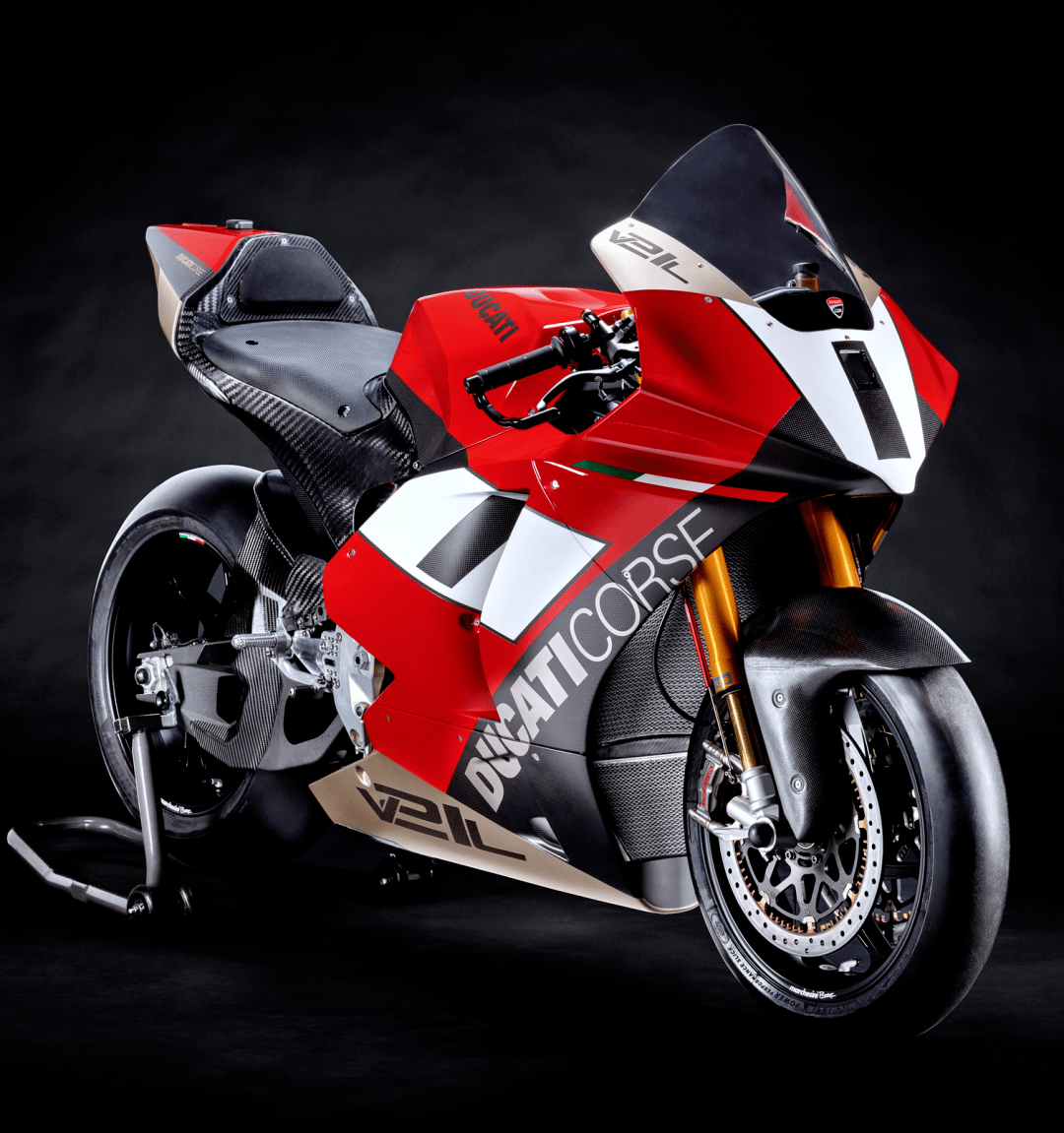V21L 原型車由杜卡迪研發(fā)部門和 Corse 賽車部分合作開發(fā)而成,是一款獨(dú)特的電動摩托車,它集成了電池組、發(fā)動機(jī)和逆變器前所未有的技術(shù)解決方案。原型車的總重量為 225 公斤(前部和后部的重量分布分別為 54% 和 46%),動力單元的最大功率為 110 kw(150 匹)、峰值扭矩 140 N.m。