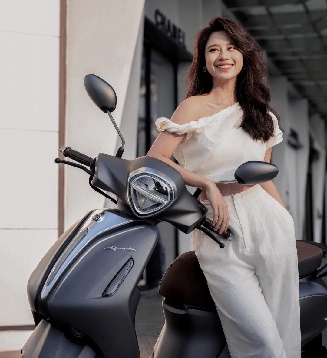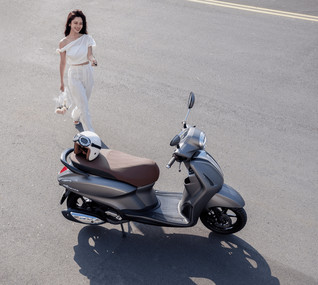 針對(duì) Grande 125 的新車上市,Yamaha 在當(dāng)?shù)厥袌?chǎng)的宣傳策略是青春少女為主。下面的圖片來自 Yamaha Motor Viet Nam,是越南當(dāng)?shù)噩F(xiàn)年 28 歲的時(shí)尚博主 Em Trendy(Nguyen Dang Khanh Linh)與 Grande 125 的合照。