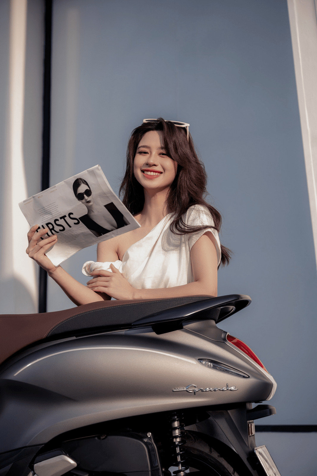 下面的圖片是現(xiàn)年 22 歲、2020 越南世界小姐(Miss World Vietnam)參賽者之一的 Do Thi Ha 與 Grande 125 的合照。