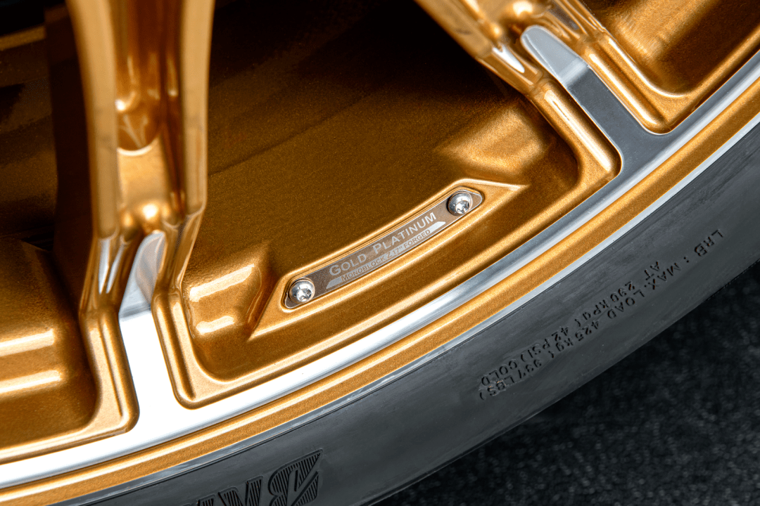 5、博速專為兩輪摩托車開發(fā)的 Monoblock Z “ GOLD PLATINUM ” 鈦白金 前后鋁合金鍛造輪框。廠方稱,這套輪框使用最先進的鍛造和 CNC 技術生產(chǎn),九柱式的設計、金色與銀灰色的結(jié)合;