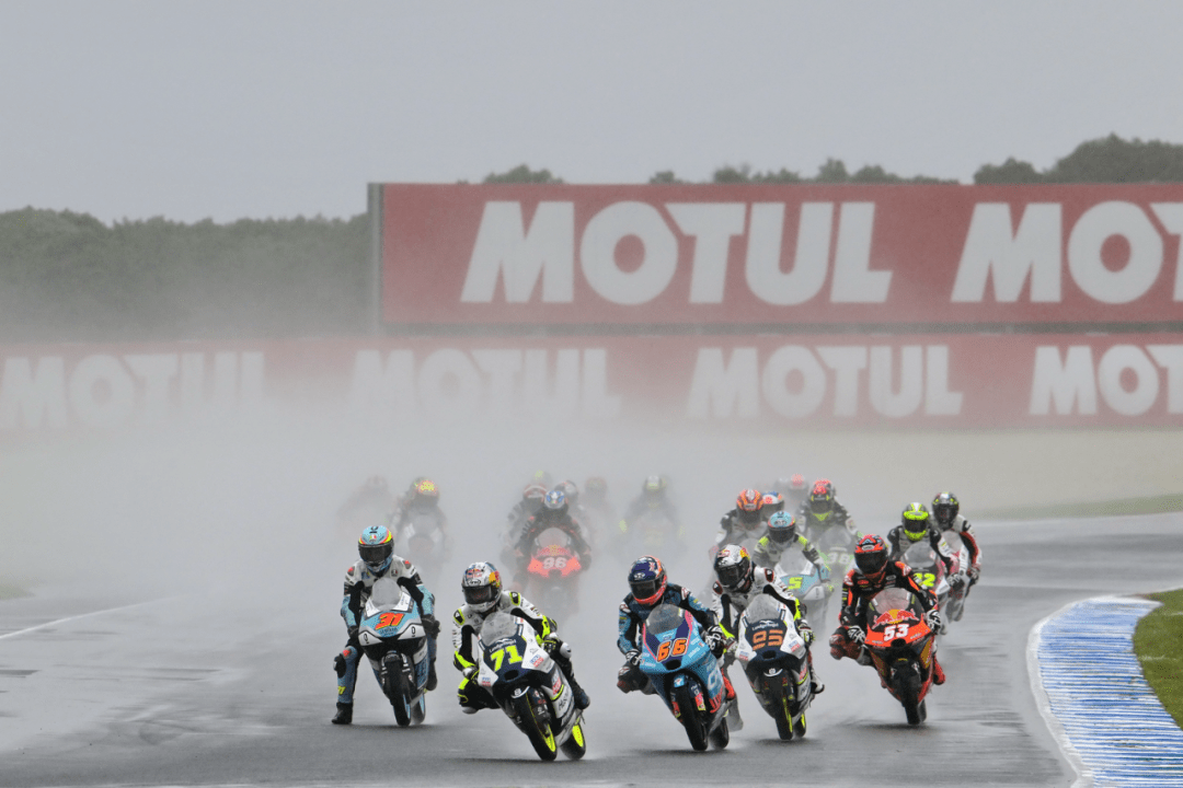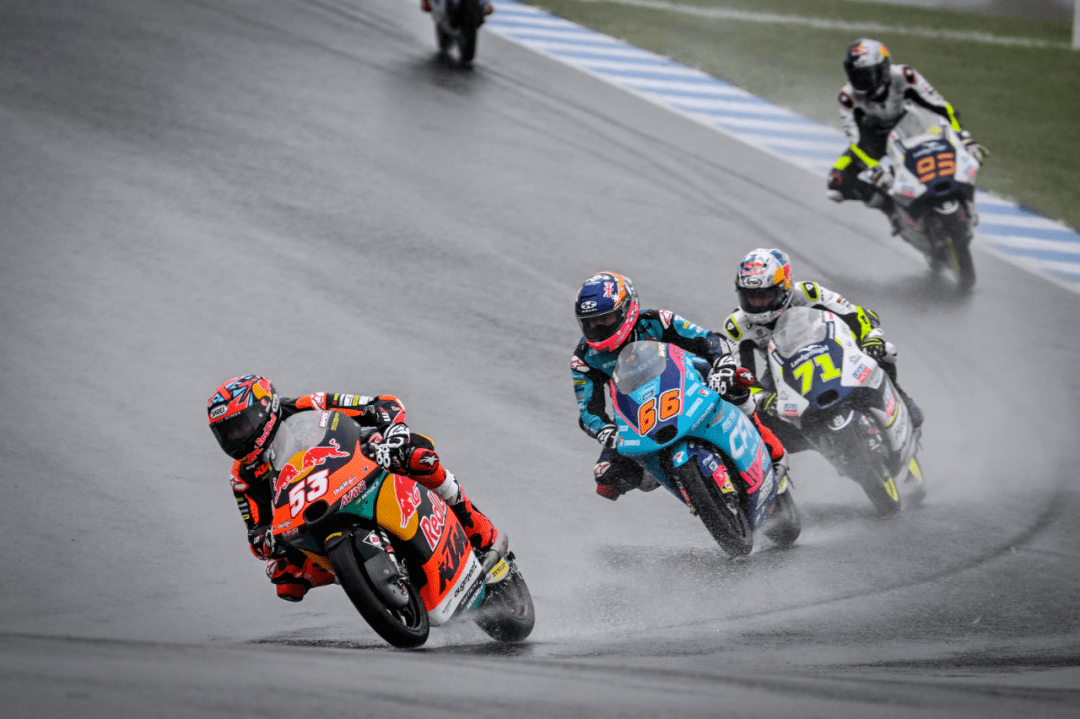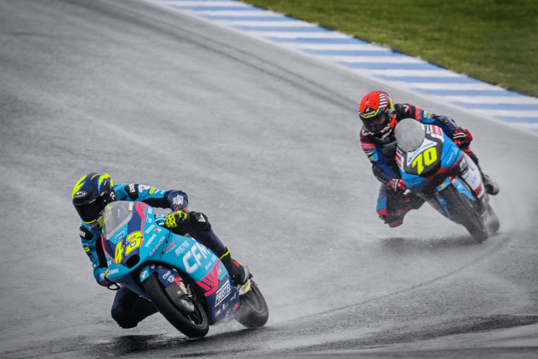 Moto2 級別的比賽在惡劣的天氣下進行,發(fā)車位置并不算好、52 號車的阿科巴(Jeremy Alcoba)憑借著良好的起跑,發(fā)車沒多久就進入了前十名,并避開了多起的摔車意外;第 6 圈的比賽結(jié)束時、他的位置上升到第五。隨著天氣狀況愈來愈差、不斷有更多的車手摔倒,賽會在第 9 圈的時候出示紅旗、終止了比賽。阿科巴最后獲得了第四名,這是他今年繼美國站之后、再次拿到第四的佳績。