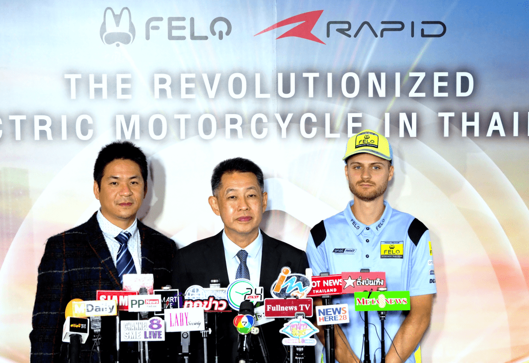 泰國工業(yè)部副部長Natthaphon Rangsitphon,泰國投資委員會秘書長納立·特薩提拉沙(Narit Therdsteerasukdi),F(xiàn)ELO 電斐科技創(chuàng)始人兼 CEO 張靜毅,Smartech Motor 總裁張海波、執(zhí)行副總裁那龍博士(Dr.Narong Sirilertworakul),代表 FELO 車隊出戰(zhàn) MotoE 世界錦標(biāo)賽的意大利車手費內(nèi)洛(Alessio Finello),以及來自泰國政商各界嘉賓、經(jīng)銷商和媒體共 200 余人出席了此次發(fā)布會。