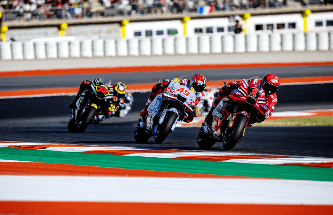 在周末壓軸登場(chǎng)的競(jìng)賽環(huán)節(jié)是 MotoGP 級(jí)別的 Sprint 短途沖刺賽,賽程為 13 圈、折合約 52 公里。吉南托里奧有一個(gè)非常不錯(cuò)的起跑、快速地進(jìn)入了前十,并在隨后的幾圈比賽里、陸續(xù)超越了多位對(duì)手,他最終奪得了第六名、拿到了 4 分。