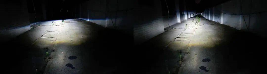 夜間實測,VPS的光斑要更大一點,鋪路效果更好,且近車位置也照顧到了。亮度方面,視覺上差別不大((因為光斑中央都很亮,肉眼已經看不出明顯差異,所以不是一味追求亮度,達到一定亮度后,需要更好的光斑鋪路效果,光斑大又聚攏為好),用測光儀分別測試兩車遠近光同開(同樣5米,25厘米左右高度),VPS的照度為802,UY為670(單位:勒克斯)。