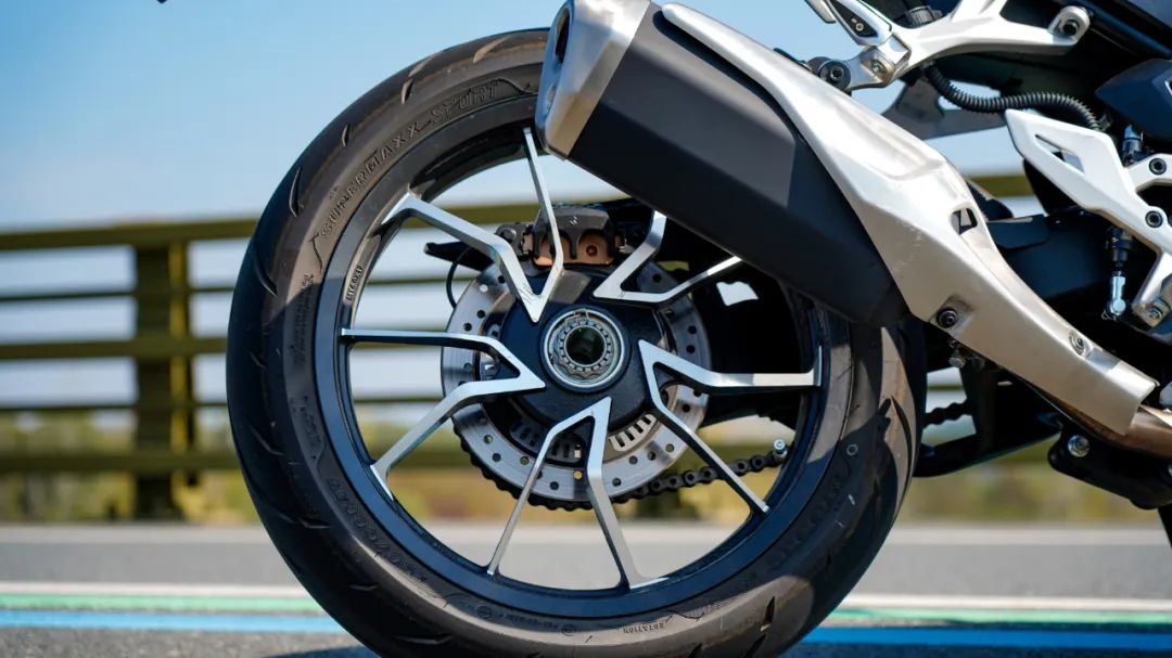賽450采用的是異步雙缸發(fā)動(dòng)機(jī),并且最新推出了Moto2紀(jì)念版,其動(dòng)力經(jīng)Moto2賽事技術(shù)專家重新調(diào)教,賬面參數(shù)沒變,但低轉(zhuǎn)爆發(fā)力明顯提升,以及高轉(zhuǎn)動(dòng)力輸出平順性提升,賬面參數(shù)比450SR大2千瓦、4牛米。