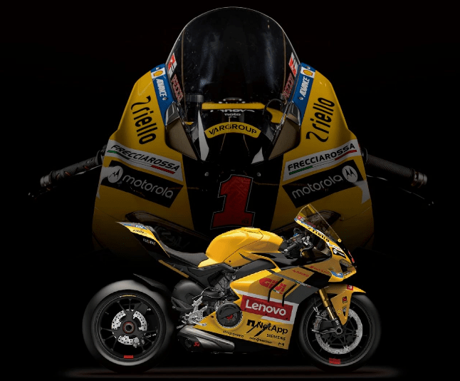 這款黃色涂裝的Panigale V4代表MotoGP冠軍車手Francesco Bagnaia,靈感來自本賽季杜卡迪的Giallo Ducati涂裝,杜卡迪聯(lián)想車隊的Desmosedici GP23在Misano大獎賽上亮相。這種顏色在杜卡迪的運動史上有著重要的傳統(tǒng),限量 263 輛。