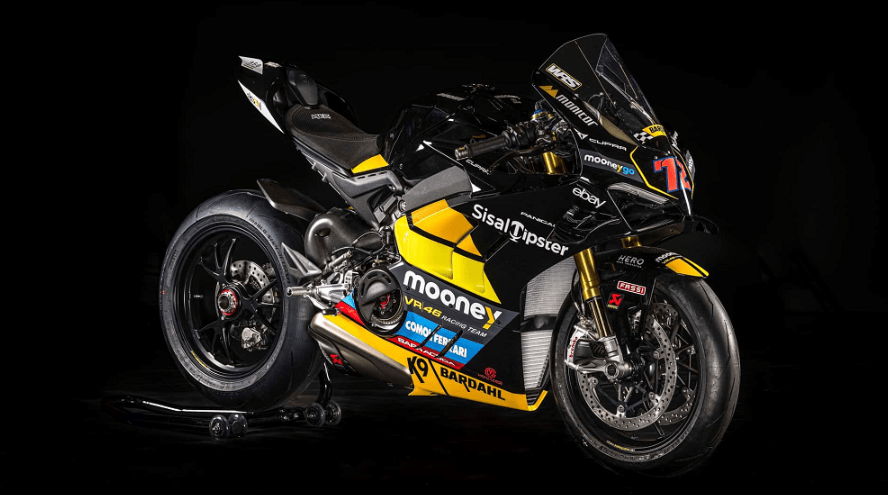 這款Panigale V4代表著MotoGP車手Marco Bezzecchi,涂裝特點是Mooney VR46車隊的黑色和黃色,為Marco Bezzecchi的賽季著色,他在MotoGP世界錦標(biāo)賽中駕駛Desmosedici GP22獲得第三名,限量72輛。