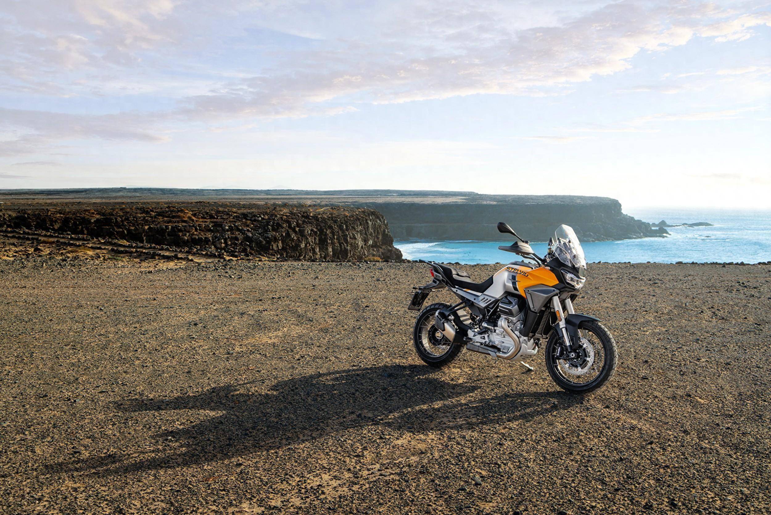 新的 2024 Stelvio 搭載一副與 V100 Mandelo 同平臺(tái)的水冷四沖程橫置 V 型 90 度兩氣缸、DOHC 每氣缸四氣閥的發(fā)動(dòng)機(jī),排氣量 1042 cc,六檔的變速齒輪箱,最大動(dòng)力輸出 84.6 kw(約 115 匹)、與 V100 Mandelo 大致相當(dāng)。車體采用一副鋼管式的車架、鋁合金制的后單搖臂,行程為 170 mm 的前后懸掛系統(tǒng),Brembo 配套的制動(dòng)系統(tǒng),經(jīng)過優(yōu)化空氣保護(hù)設(shè)計(jì)以達(dá)到良好舒適性和騎行樂趣的前整流罩、前風(fēng)檔,大型的數(shù)字式儀表板、LED 的燈光系統(tǒng),前 19、后 17 英寸直徑的輪框等。
