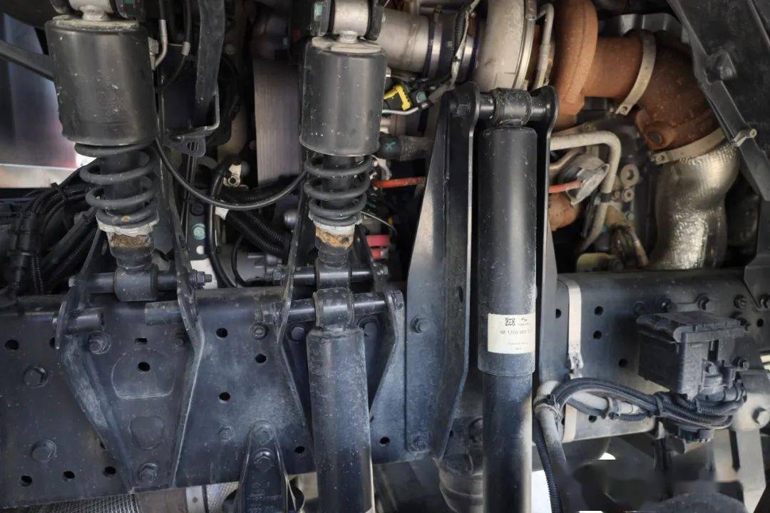 在嚴(yán)酷的沙漠環(huán)境中行駛,車輛底盤的所有部件都得到了額外的加強(qiáng),甚至連駕駛室的減震都由平時的單側(cè)一根螺旋彈簧變?yōu)榱藘筛?,而底盤的減震筒也同樣有所增加。
