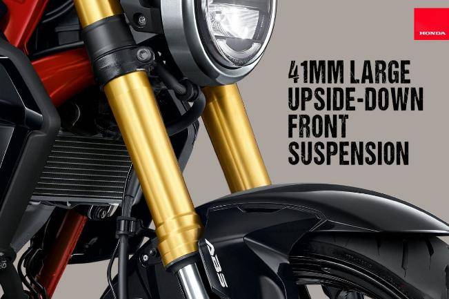 珍珠白配色使用了Honda經(jīng)典的紅白藍(lán)三色組合,油箱部分的線條圖案以及明顯的紅色車架,與CB家族大哥CB1300 SF風(fēng)格近似。而金屬黑配色則以大面積黑色為底色,以紅色車架作為點(diǎn)綴,金色的倒立式前叉也增強(qiáng)了運(yùn)動(dòng)感。